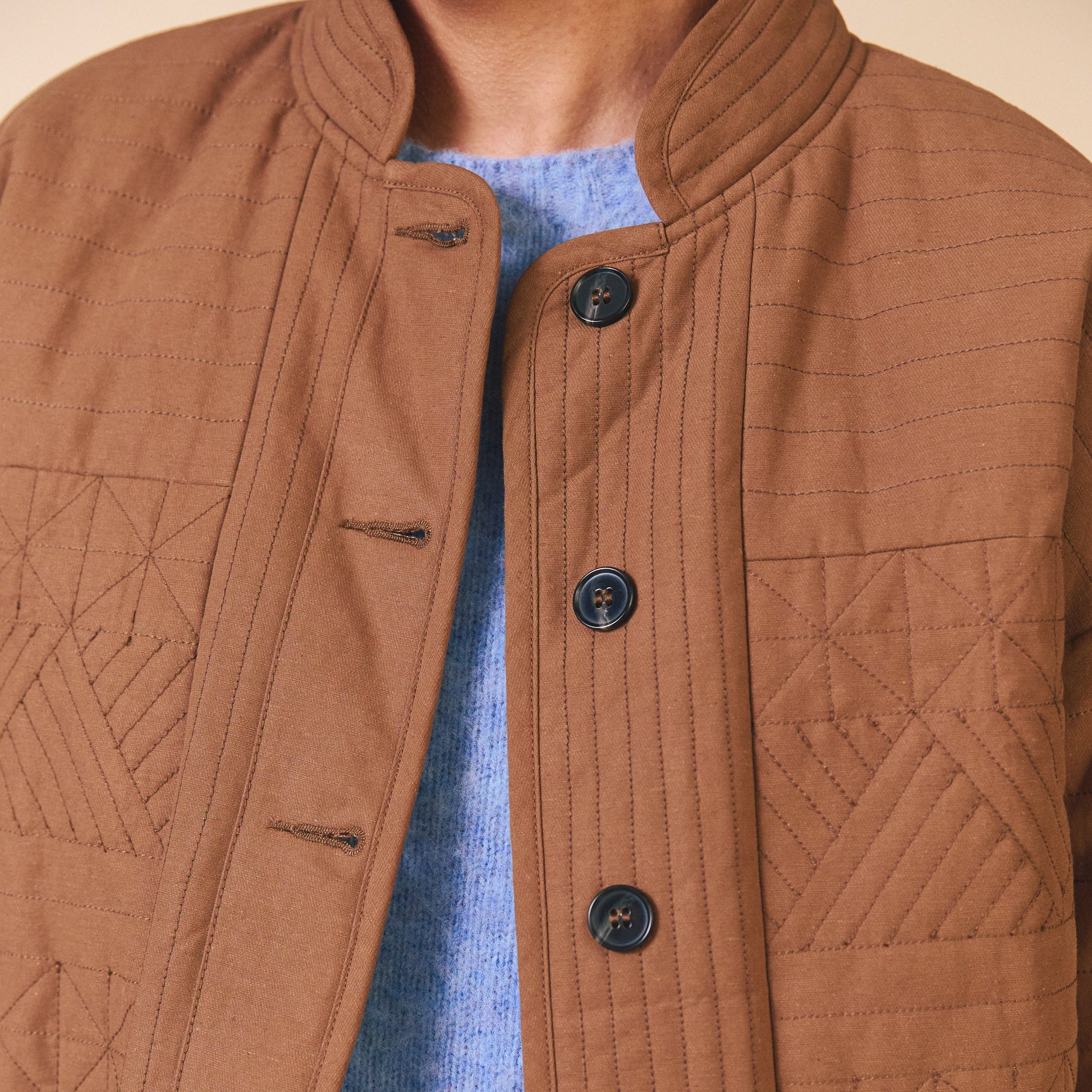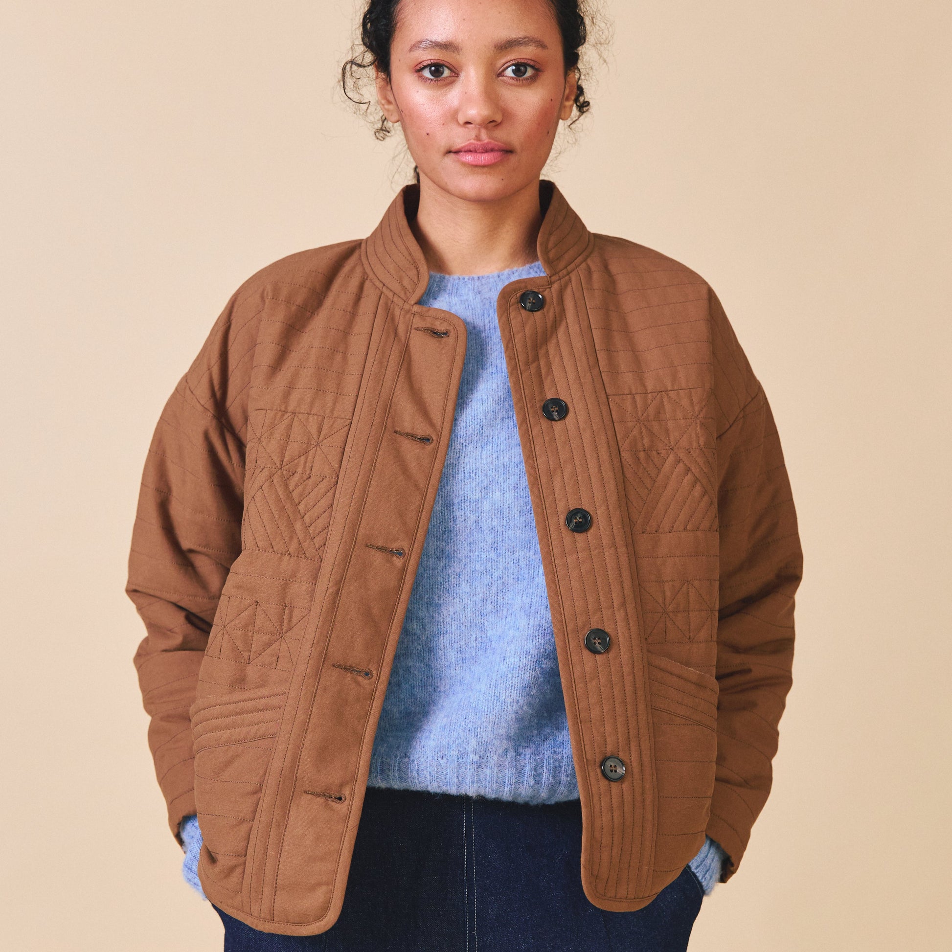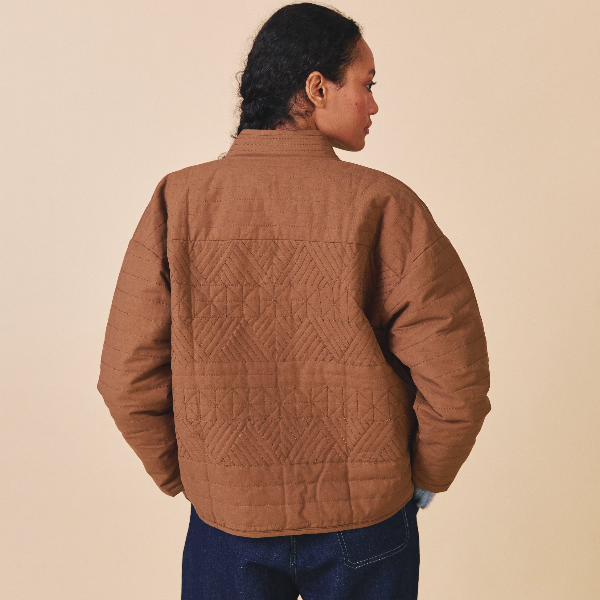 The Matilda Jacket is based on a best-seller from our first ever collection. This style is made from a beautiful cotton base with a unique bespoke quilting embroidery. The Matilda Jacket has dropped shoulders, an easy/boxy fit and deep, practical pockets. This style is very hardwearing and is perfect for all year around. This style is part of our 10-year celebration collection.