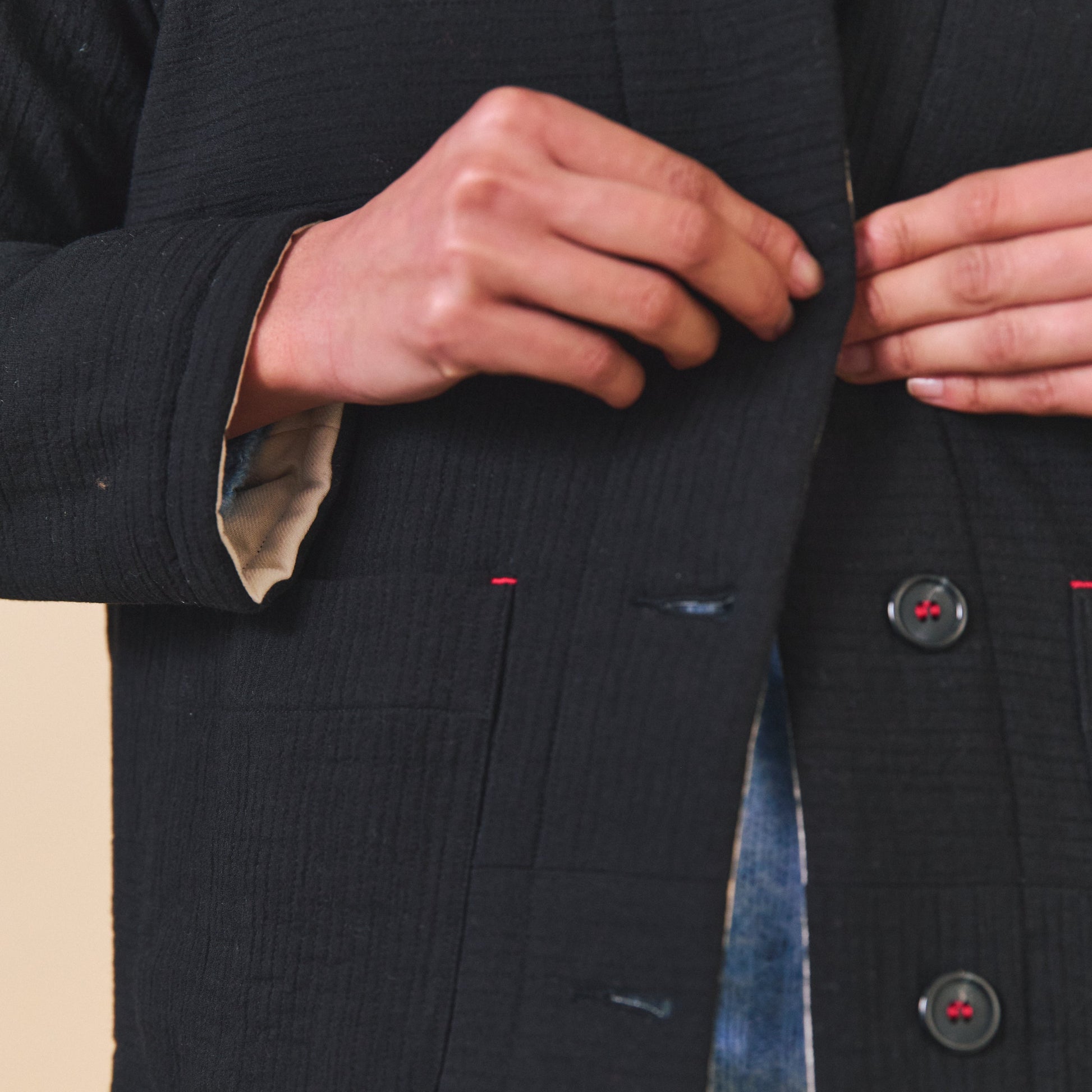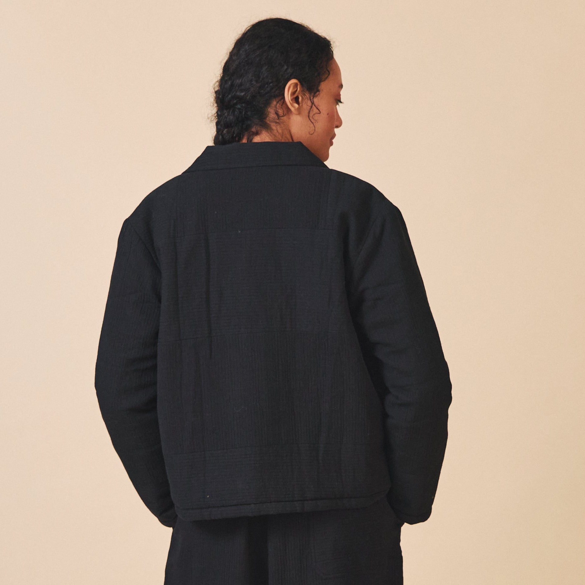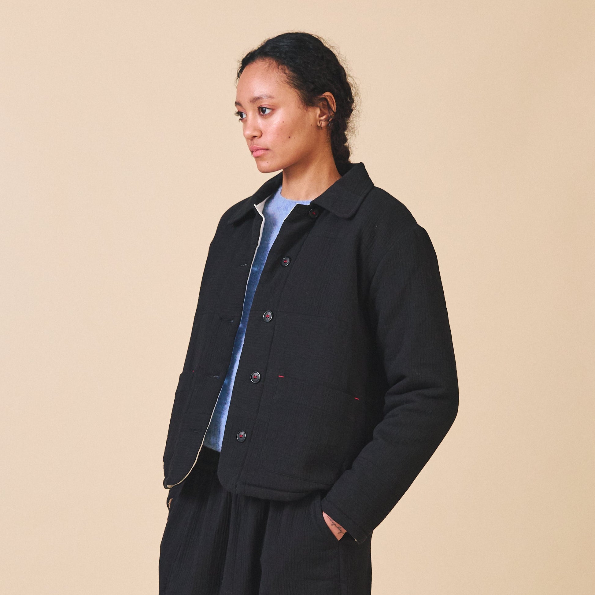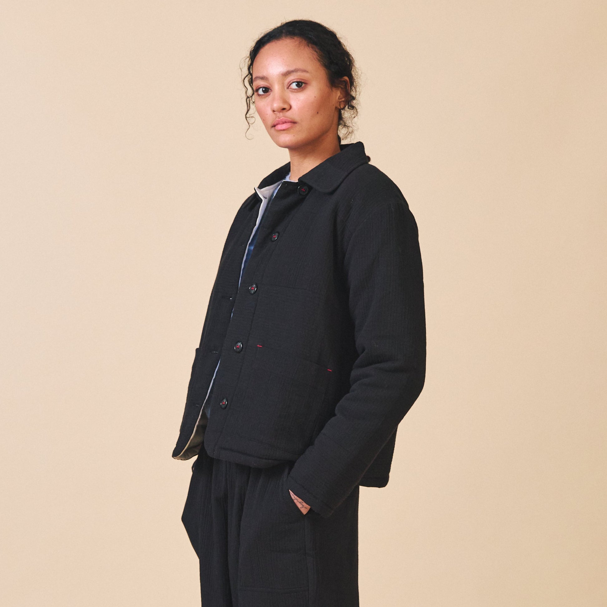 This style is part of our 10-year celebration collection. The Molly Jacket is crafted from a super-soft cotton with subtle stitched quilting lines. This style is also panelled to give an understated patch-work design. The Silhouette of the Molly Jacket is slightly boxy and very easy to wear. This style features contrast stitching on the front button opening, patch pockets and a slightly curved collar. Looks great with everything and works year-round.