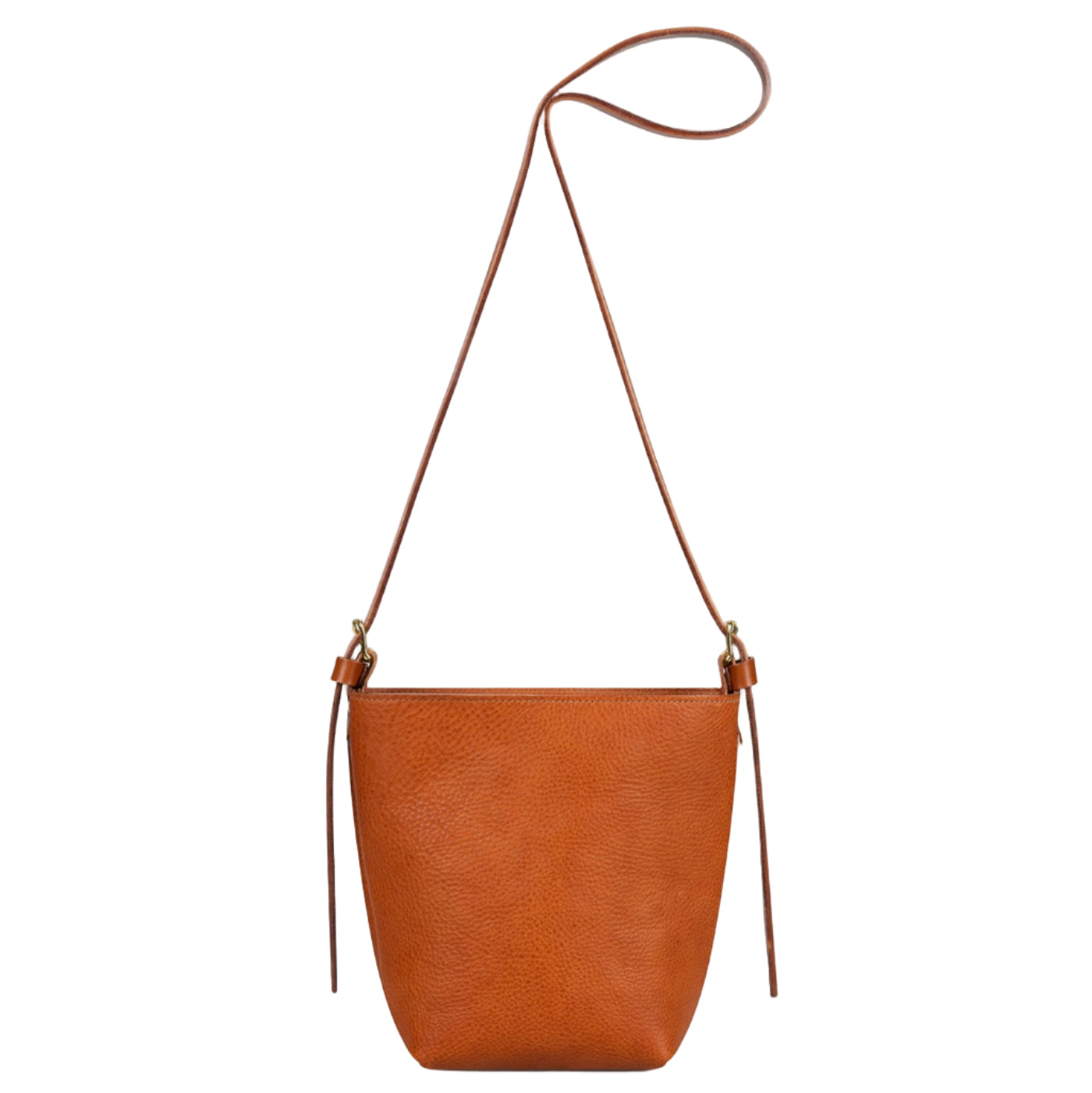 One inside slip pocket. Long, buckled, bridle strap. Brass fittings. Unlined