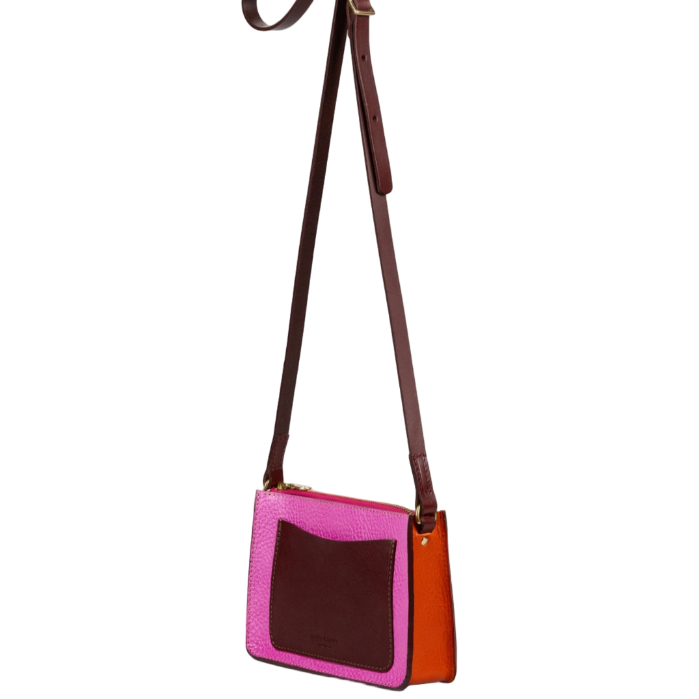 Made from Italian, grainy, veg tanned leather. Long, buckled, bridle strap. One back pocket. Brass fittings. Unlined.