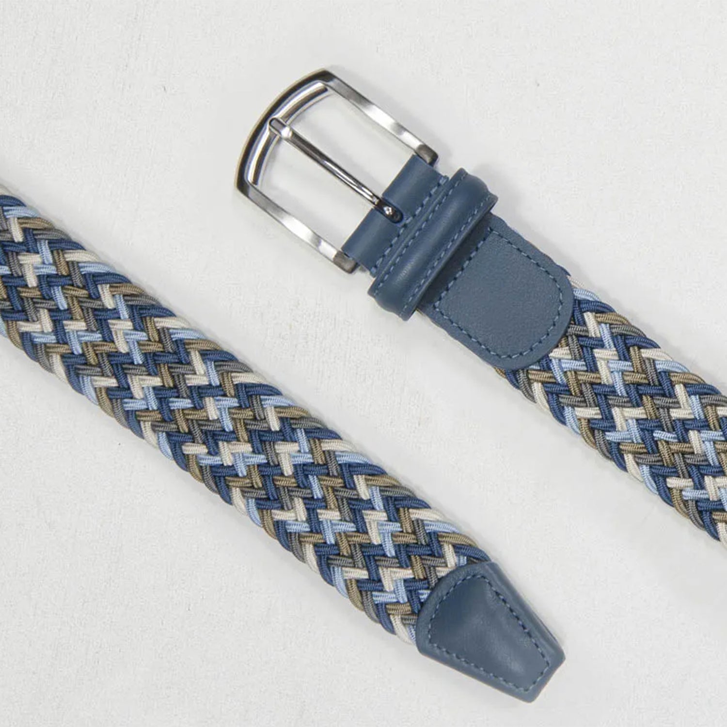 Andersons Classic Elastic Woven Belt Blue/Sky/Taupe/Cream/Grey