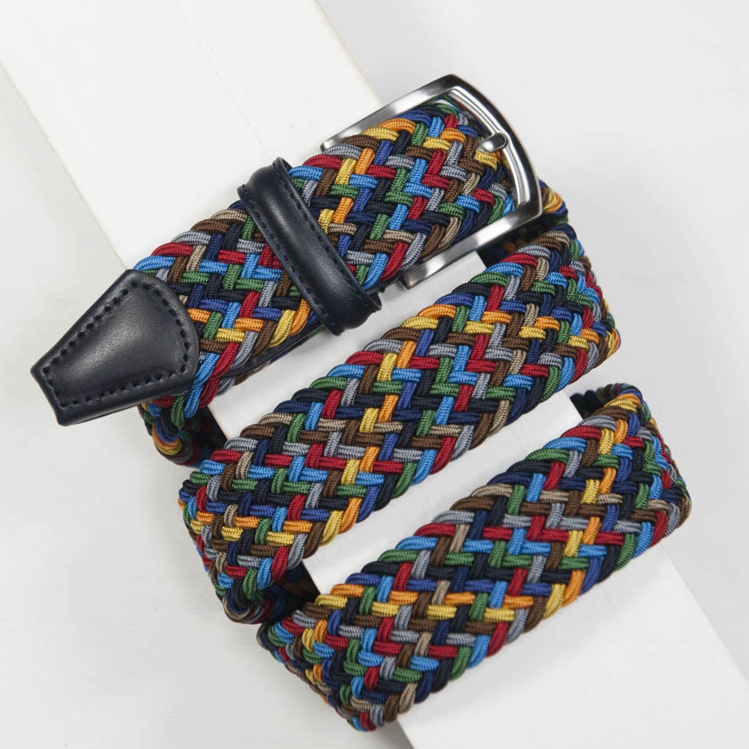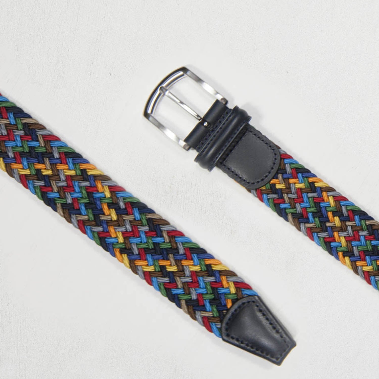 Andersons Classic Elastic Woven Belt Navy/Orange/Yellow/Aqua/Brown