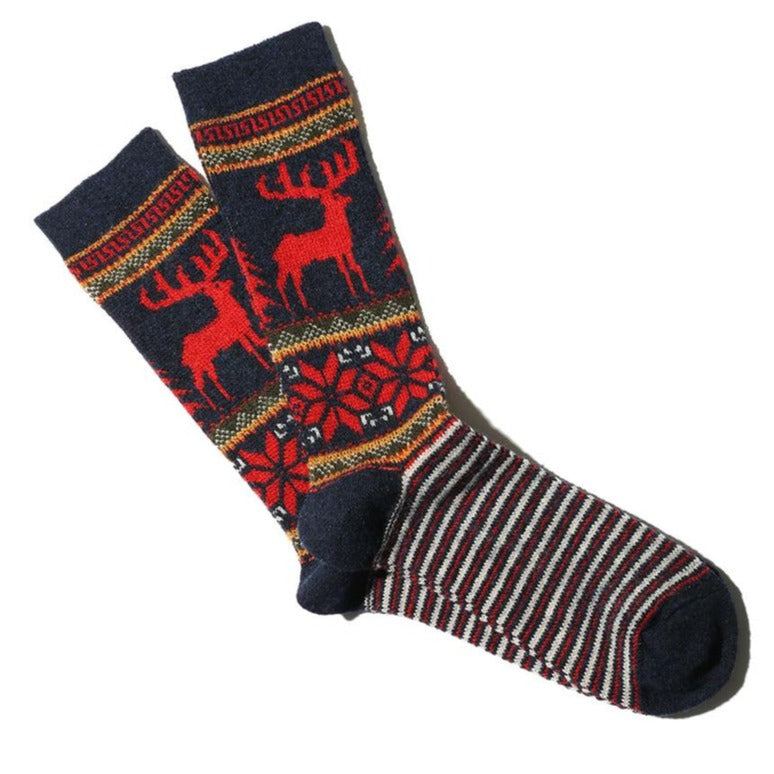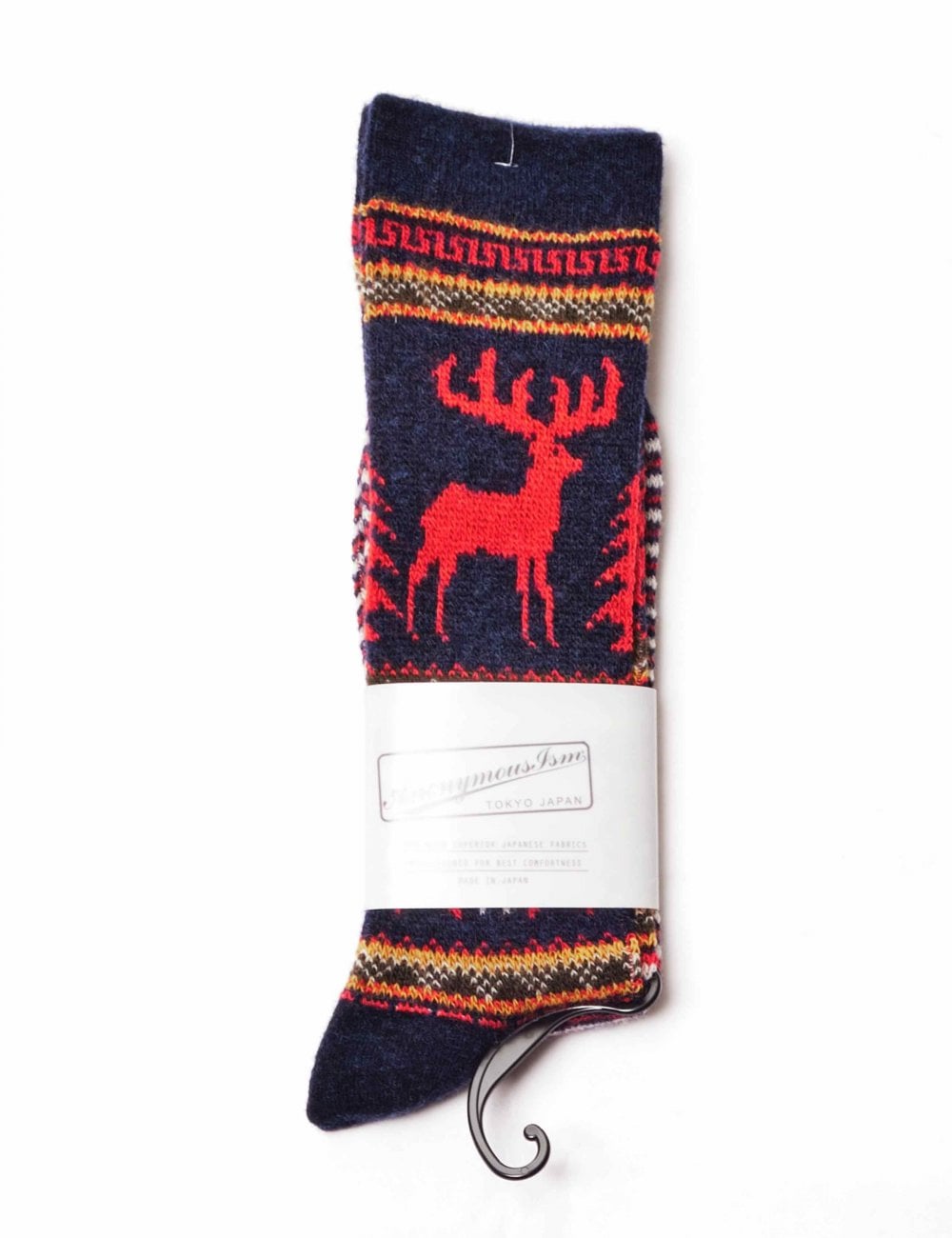 Anonymous Ism's Wool Deer Snow JQ Crew Socks are made with a luxurious cotton blend and expertly constructed to give a multi-hued effect. A ribbed cuff finishes off the distinct look.