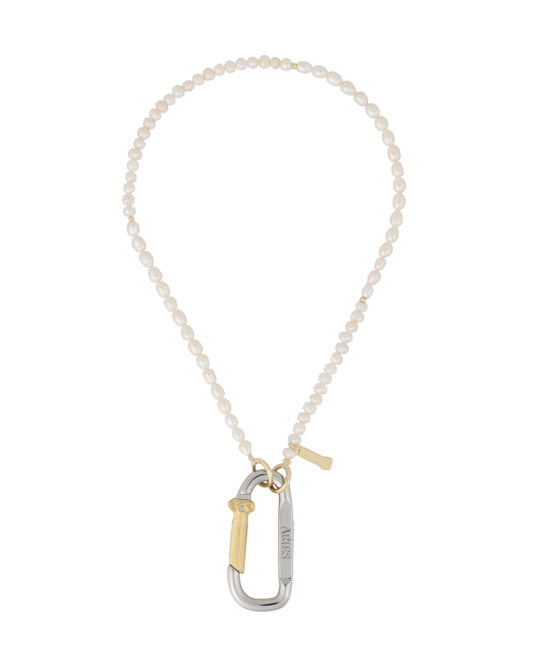 brass - 10% zinc - 25% fresh water pearl - 55% nylon - 10%