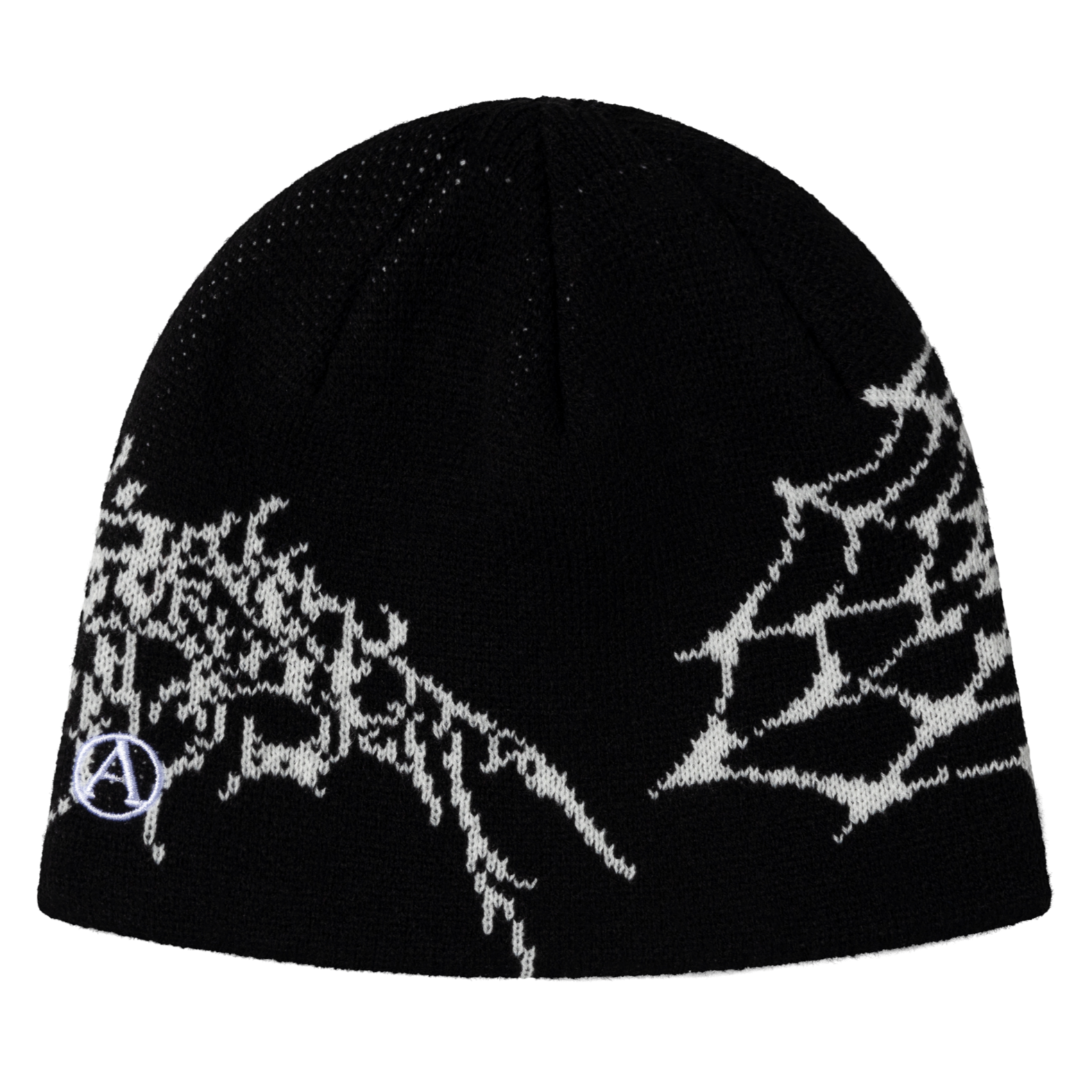 Skull beanie with jacquard seasonal 'Overlord' and Aries graphics.