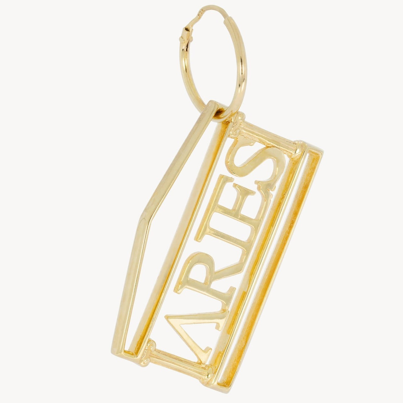 Hoop earring with a 14k gold-plated brass Aries temple charm.