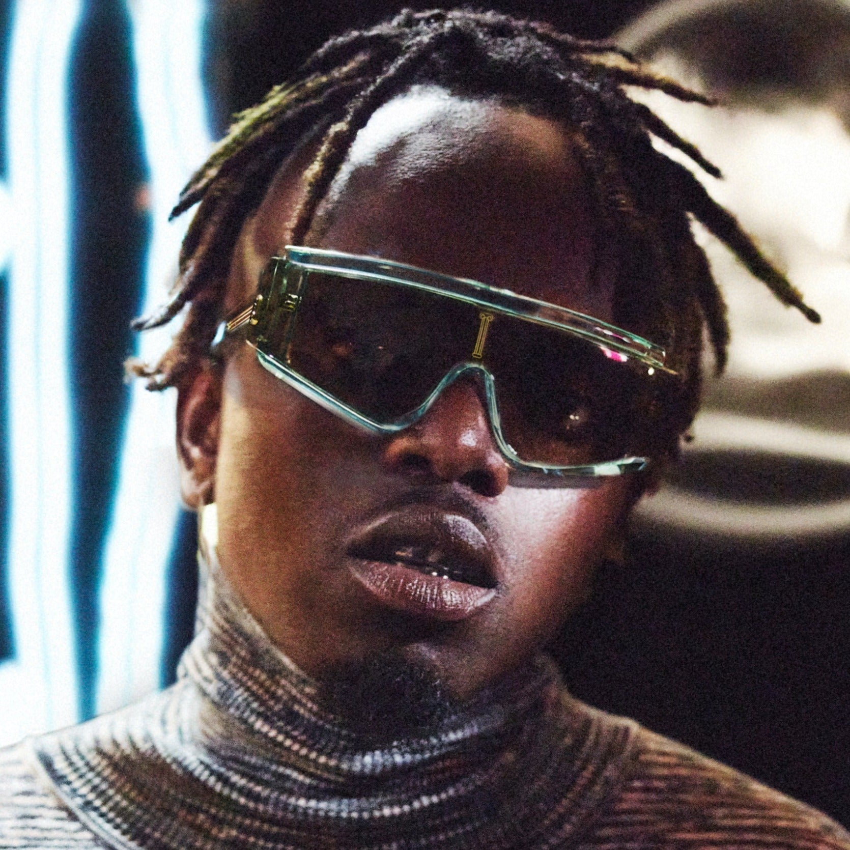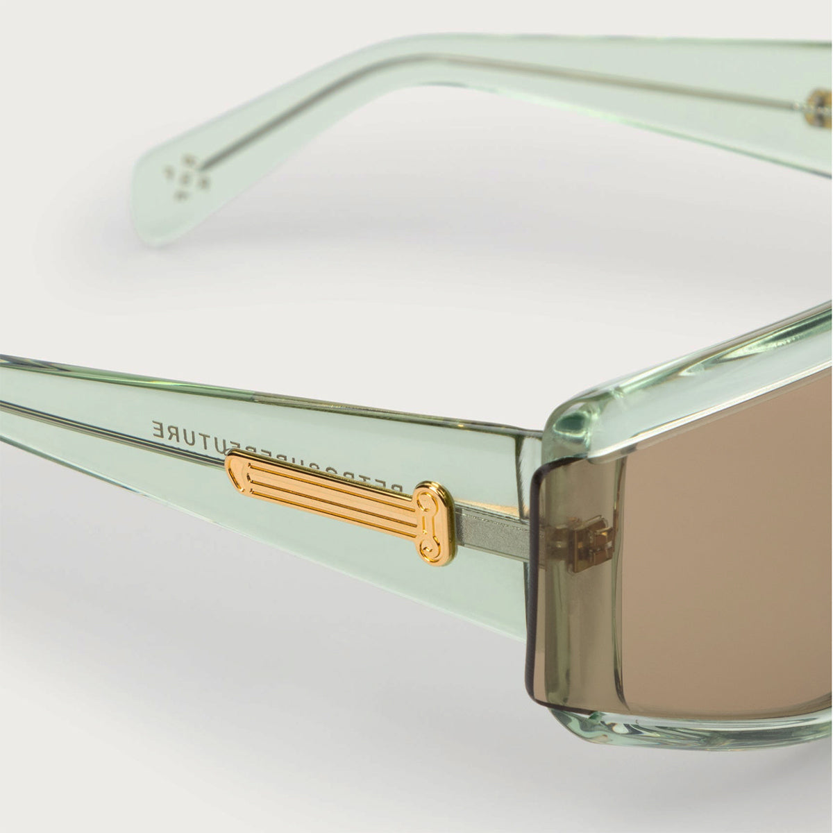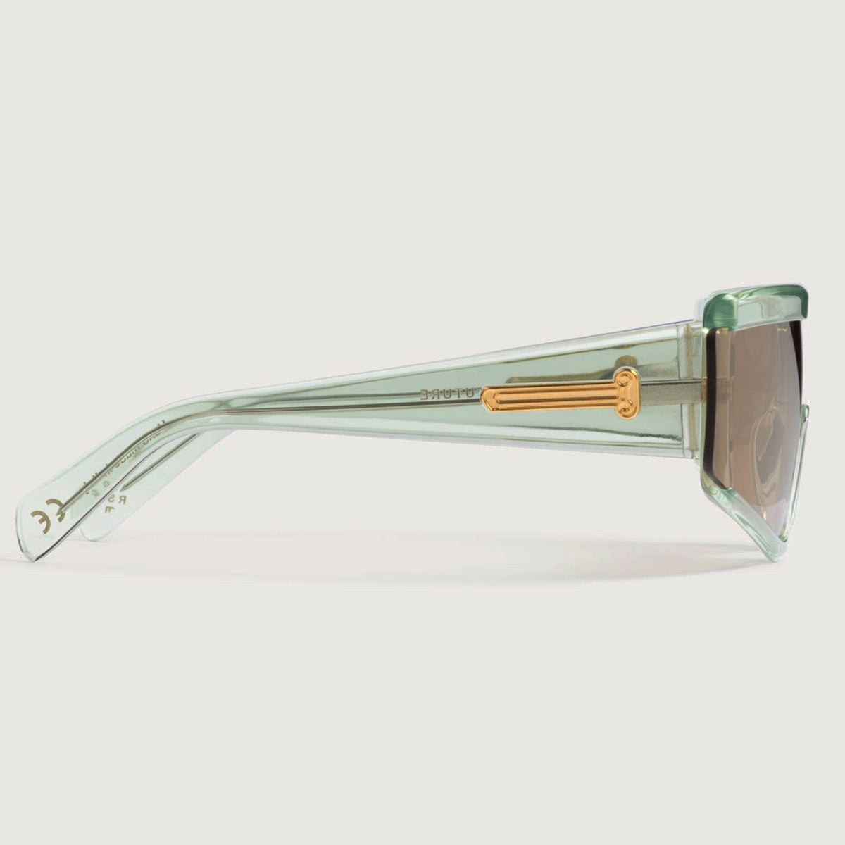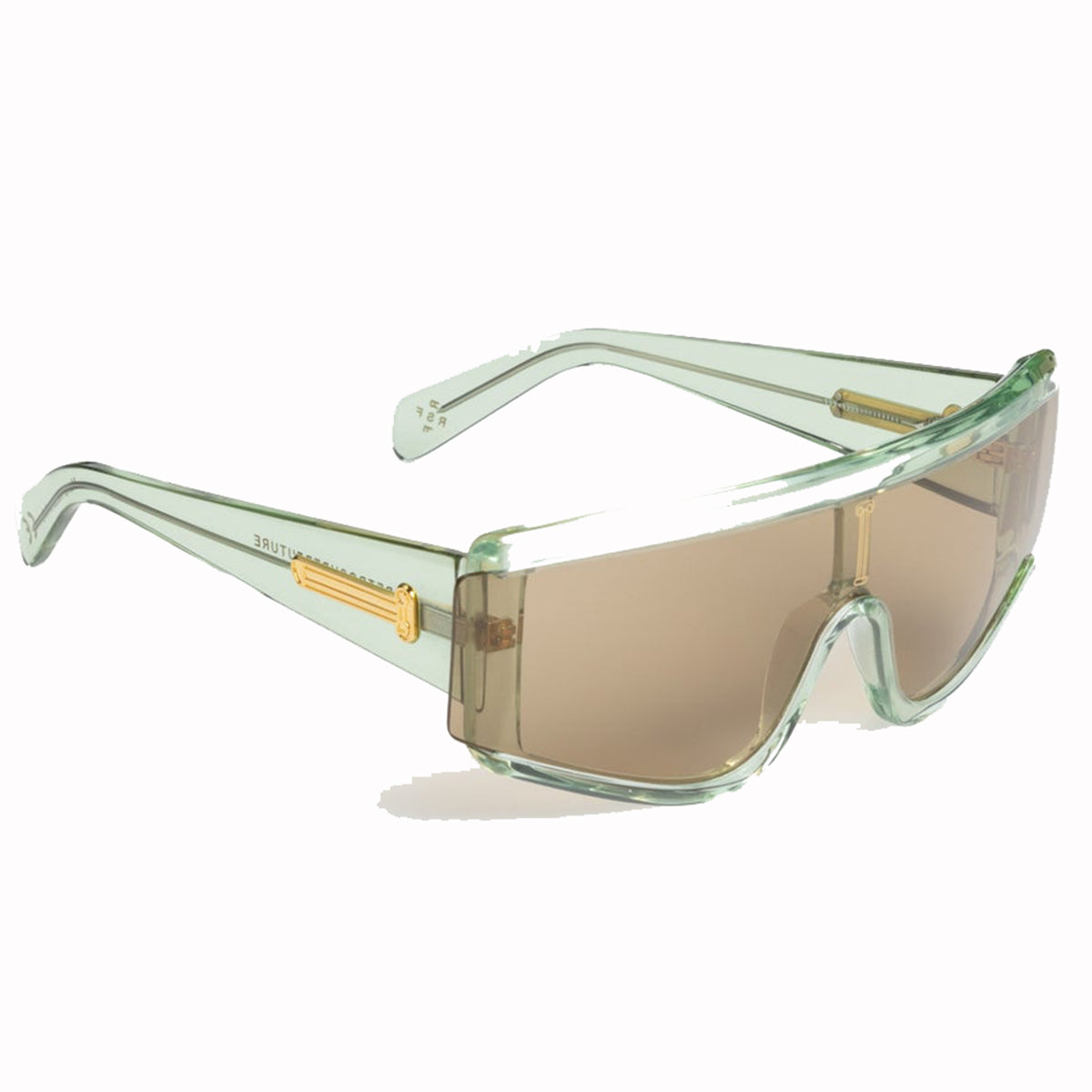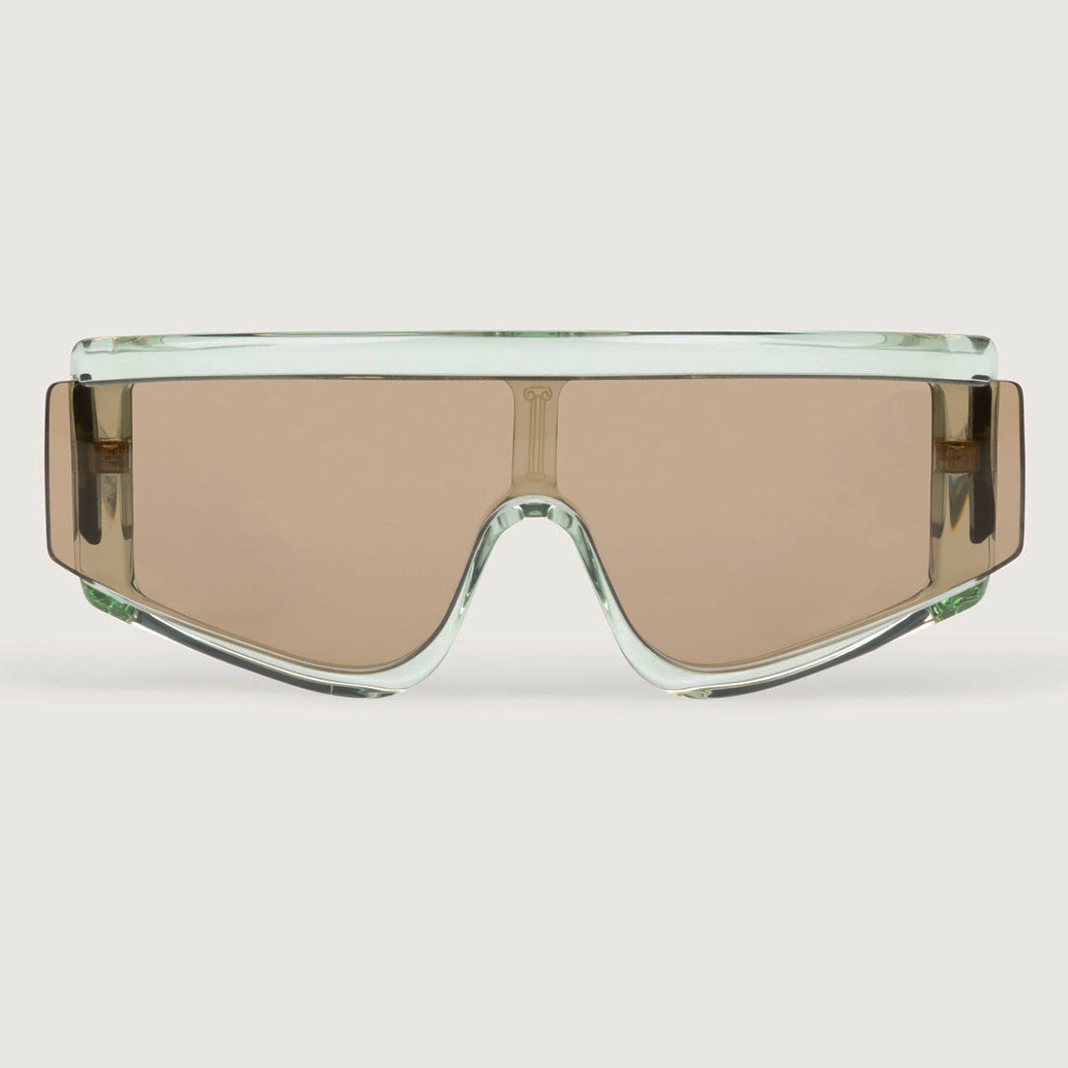 The Aries x RSF ZED is characterized by its unique shield lens and carefully crafted acetate body. The thick acetate construction features precise lines in contrast with smooth curves and thick temples. The highlight of the model is the lens cut, which extends over the acetate on the exterior sides, creating a unique angular detail on the temples.