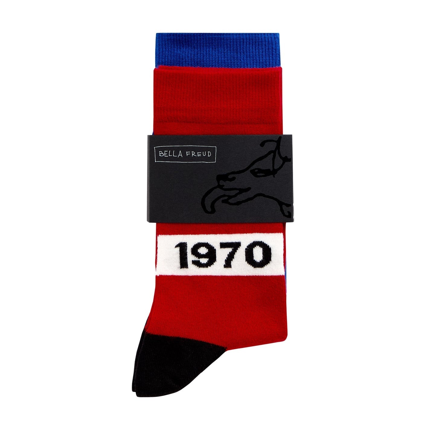 1970 Socks Set in red and blue. Our classic 1970 design in cosy sock form.