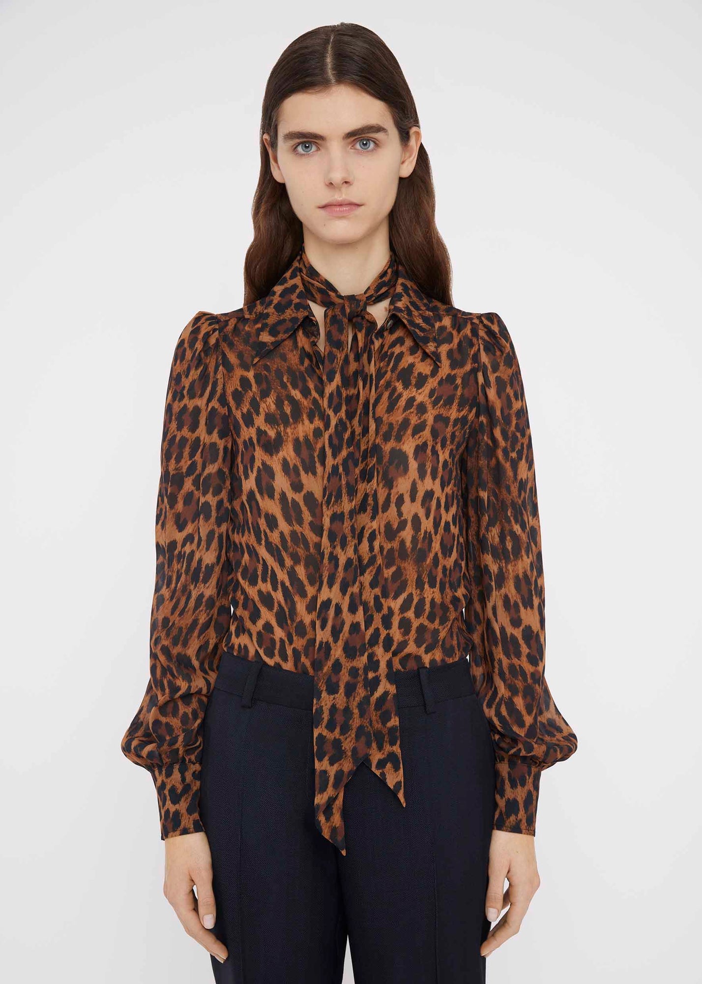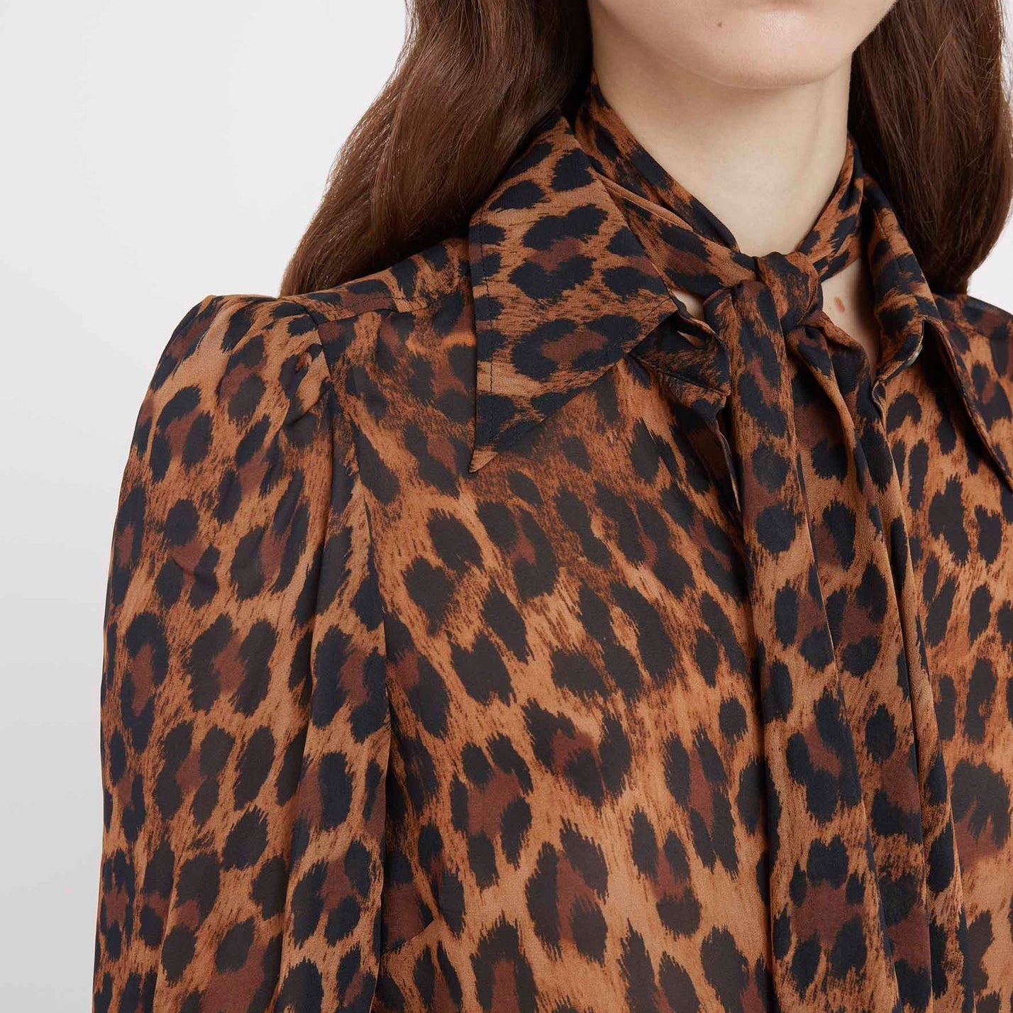 Mood for Love Shirt in leopard print, featuring cuffed sleeves and button fastening.