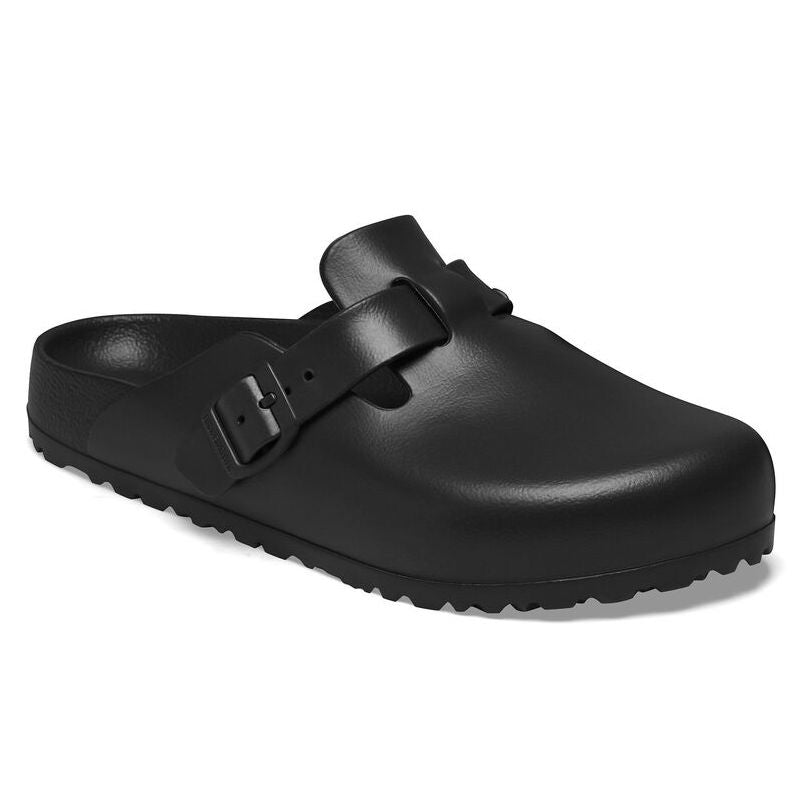 The BIRKENSTOCK Boston is a veritable classic that can easily be worn all year round. The Boston has a legendary status thanks to its sophisticated, individual design. Modelled on the cork sandal, it is made from the ultra lightweight and highly flexible synthetic material EVA. The high-quality, odour-neutral EVA has been tested for harmful substances and combines numerous positive attributes: it is very light, highly elastic, shock-absorbent, waterproof, and skin-friendly.