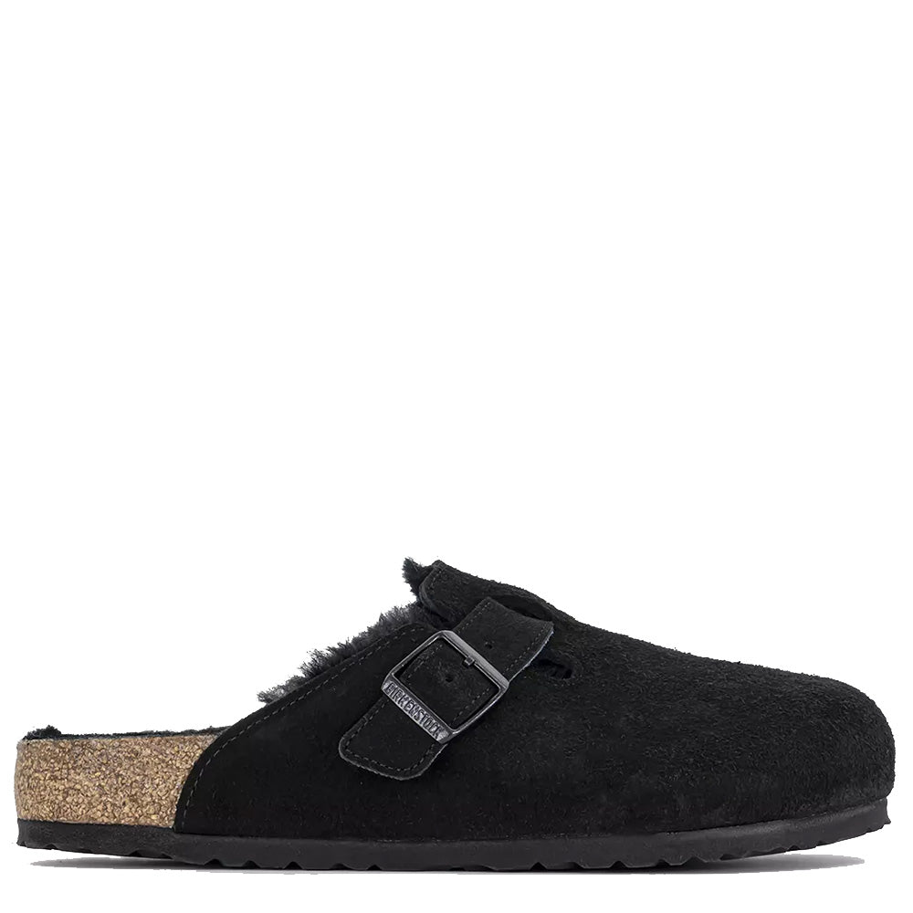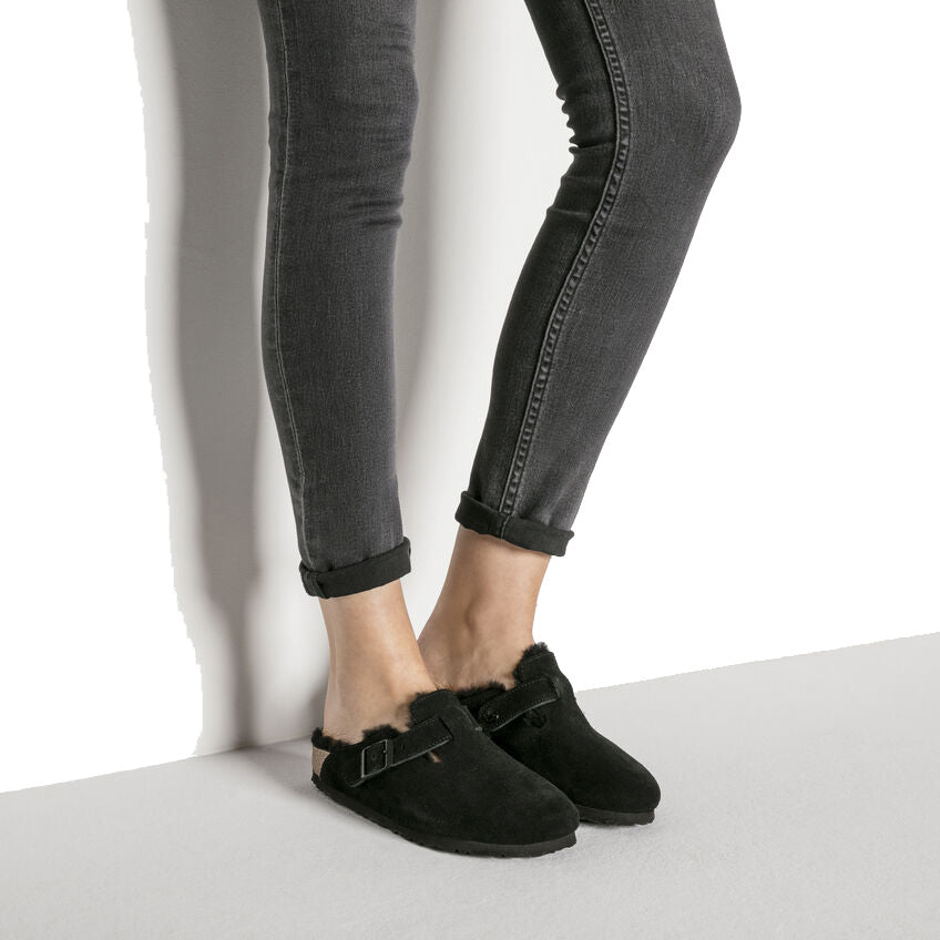 Birkenstock Boston Shearling Suede Leather Black Narrow Fit