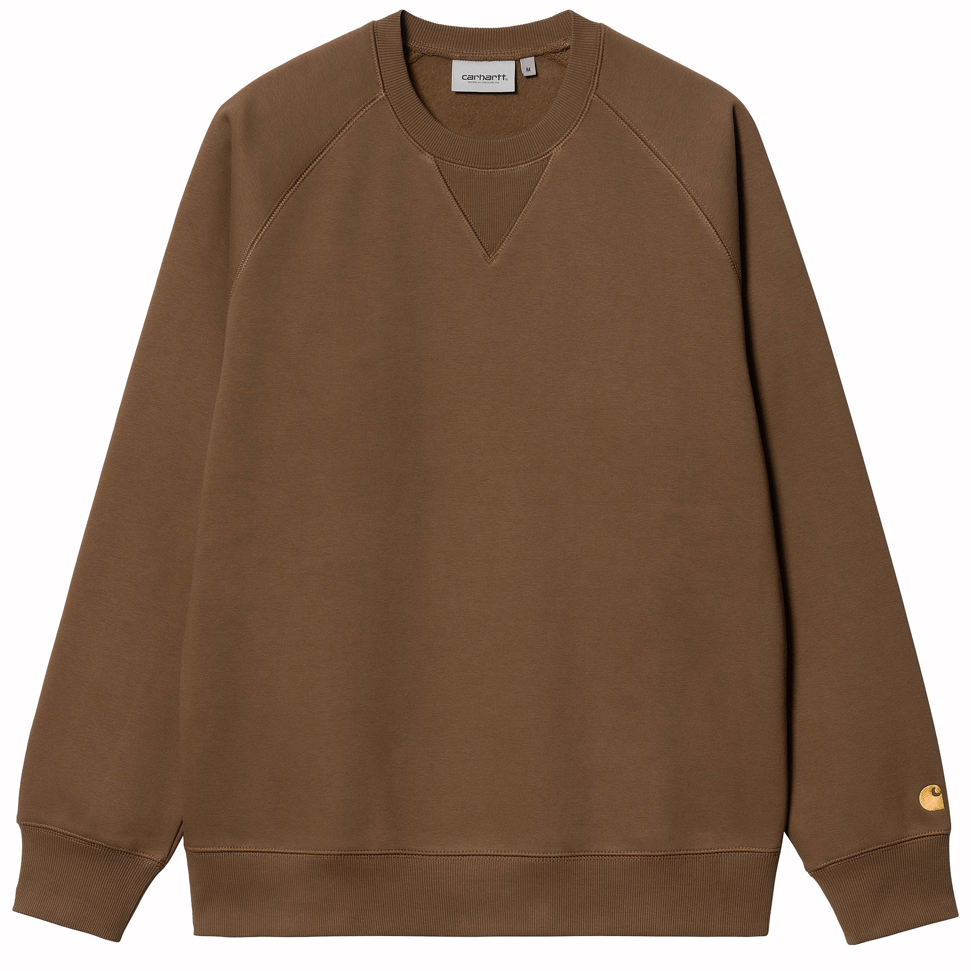 The Chase Sweatshirt is constructed from heavyweight polycotton fabric in a regular fit. The fabric has also been brushed, giving it a fleece-like backing. The item features raglan sleeves and is detailed with flatlock stitching. An embroidered 'C' Logo appears on the left sleeve.