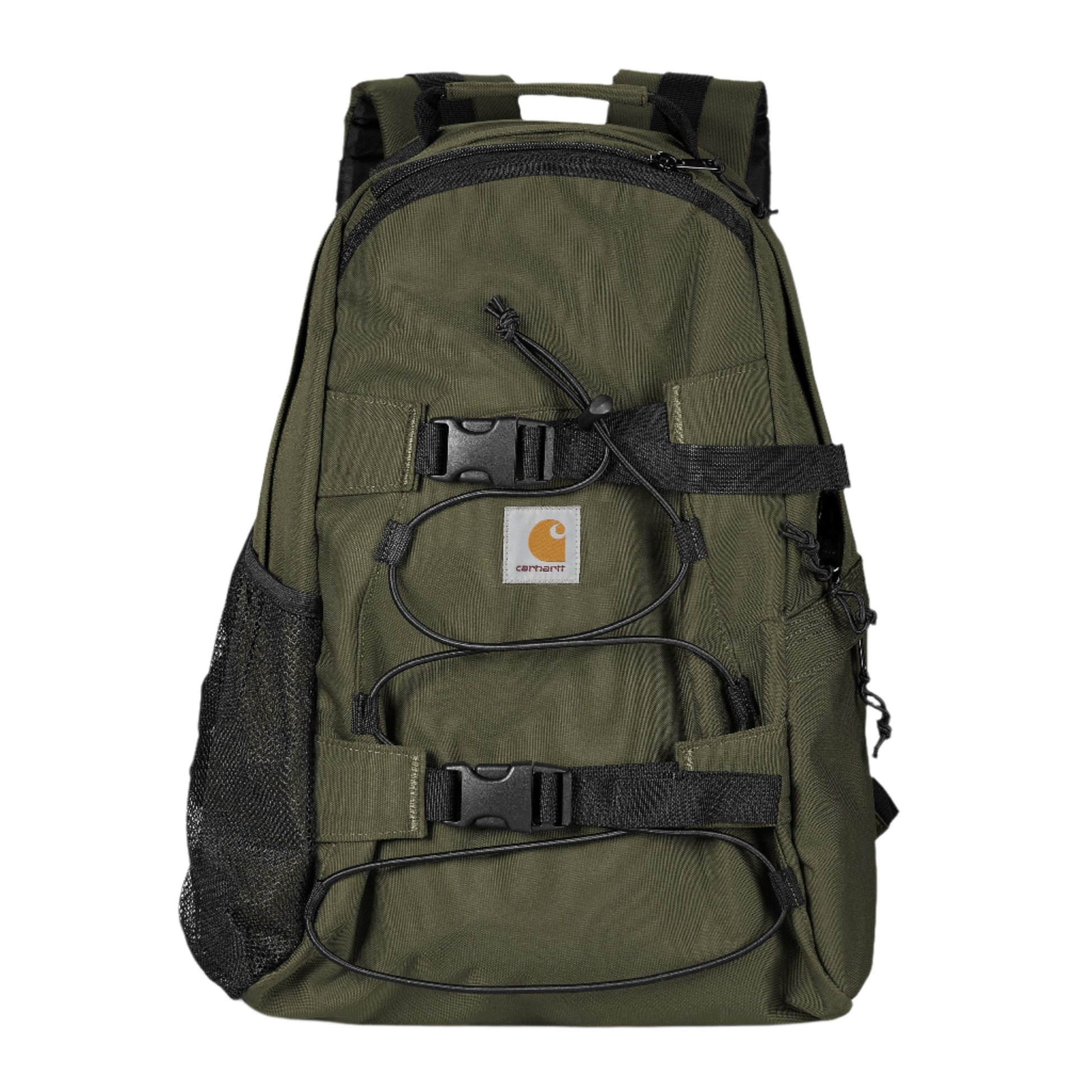 The Kickflip Backpack is a midweight, utilitarian backpack constructed from a water-repellent 11.2 oz polyester Duck Canvas. Features multiple pockets and board clips. Woven Carhartt WIP label on front. Please consult our product specifications for detailed measurements.