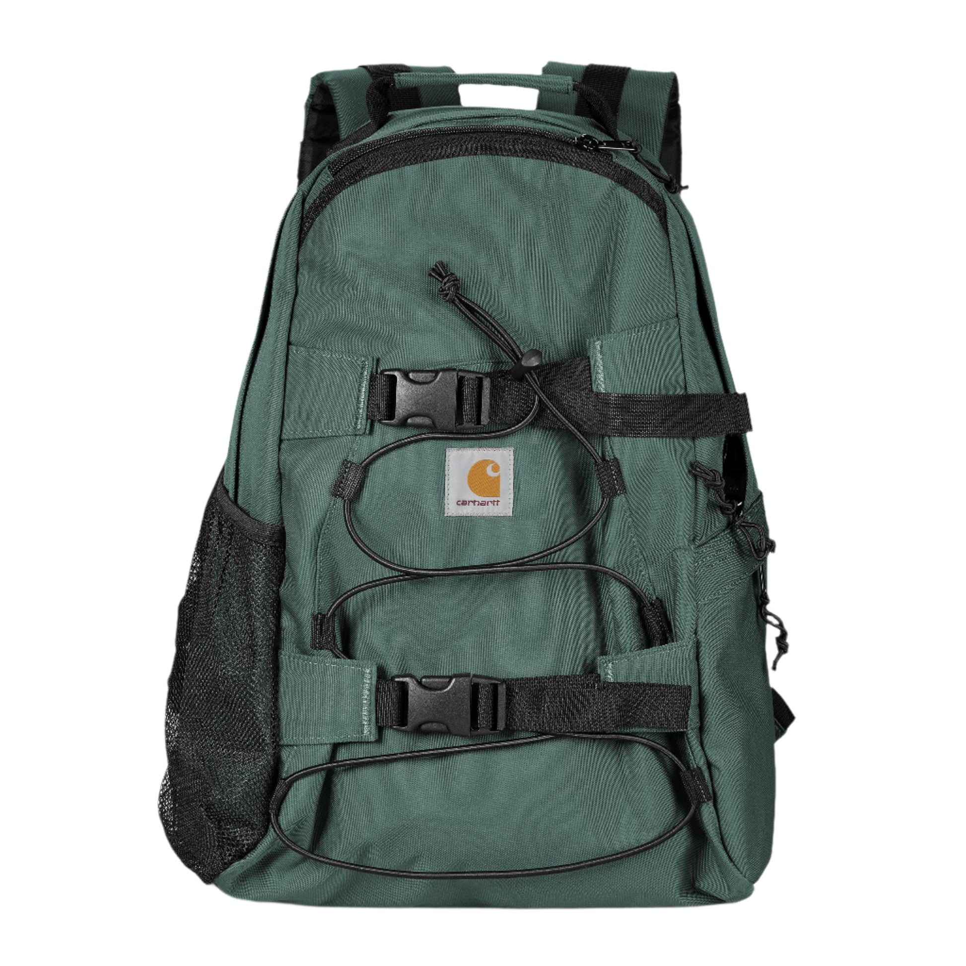 The Kickflip Backpack is a midweight, utilitarian backpack constructed from a water-repellent 11.2 oz polyester Duck Canvas. Features multiple pockets and board clips. Woven Carhartt WIP label on front. Please consult our product specifications for detailed measurements.