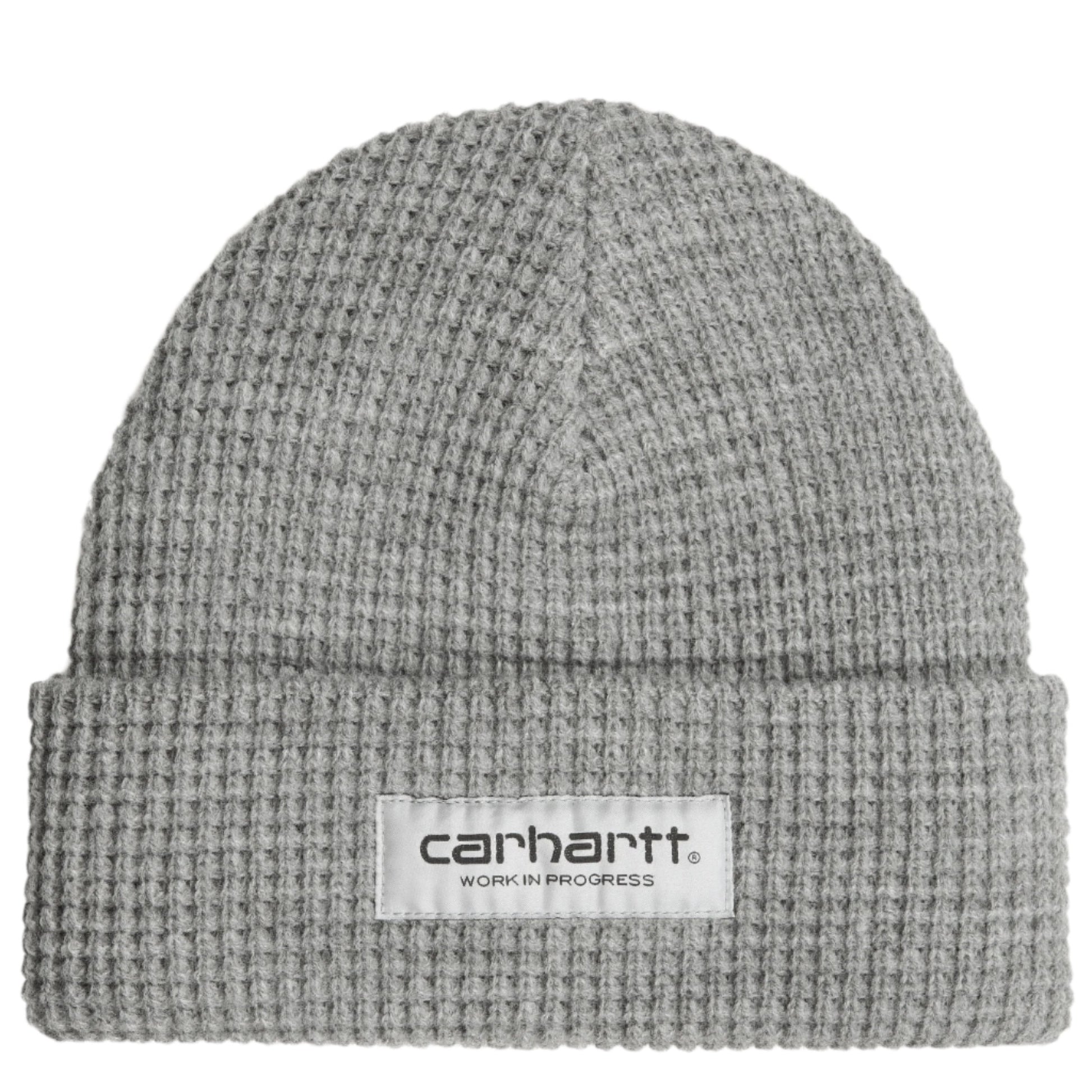 The Marlon Beanie is a stretchable rib-knit style made from acrylic yarn. A woven Script Logo label appears on the cuff.