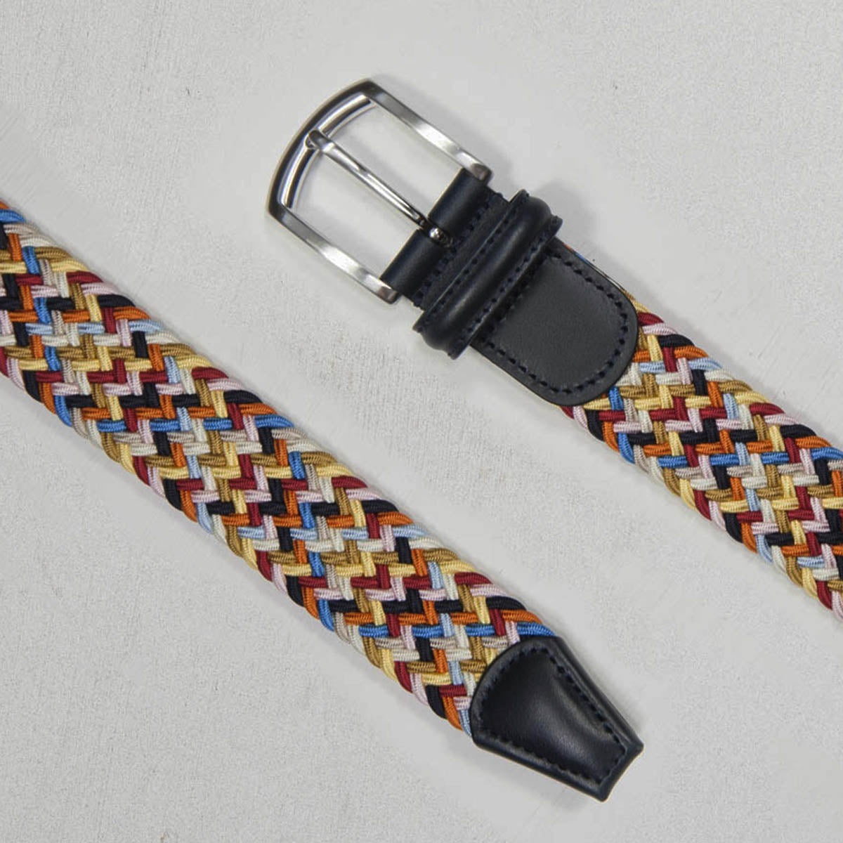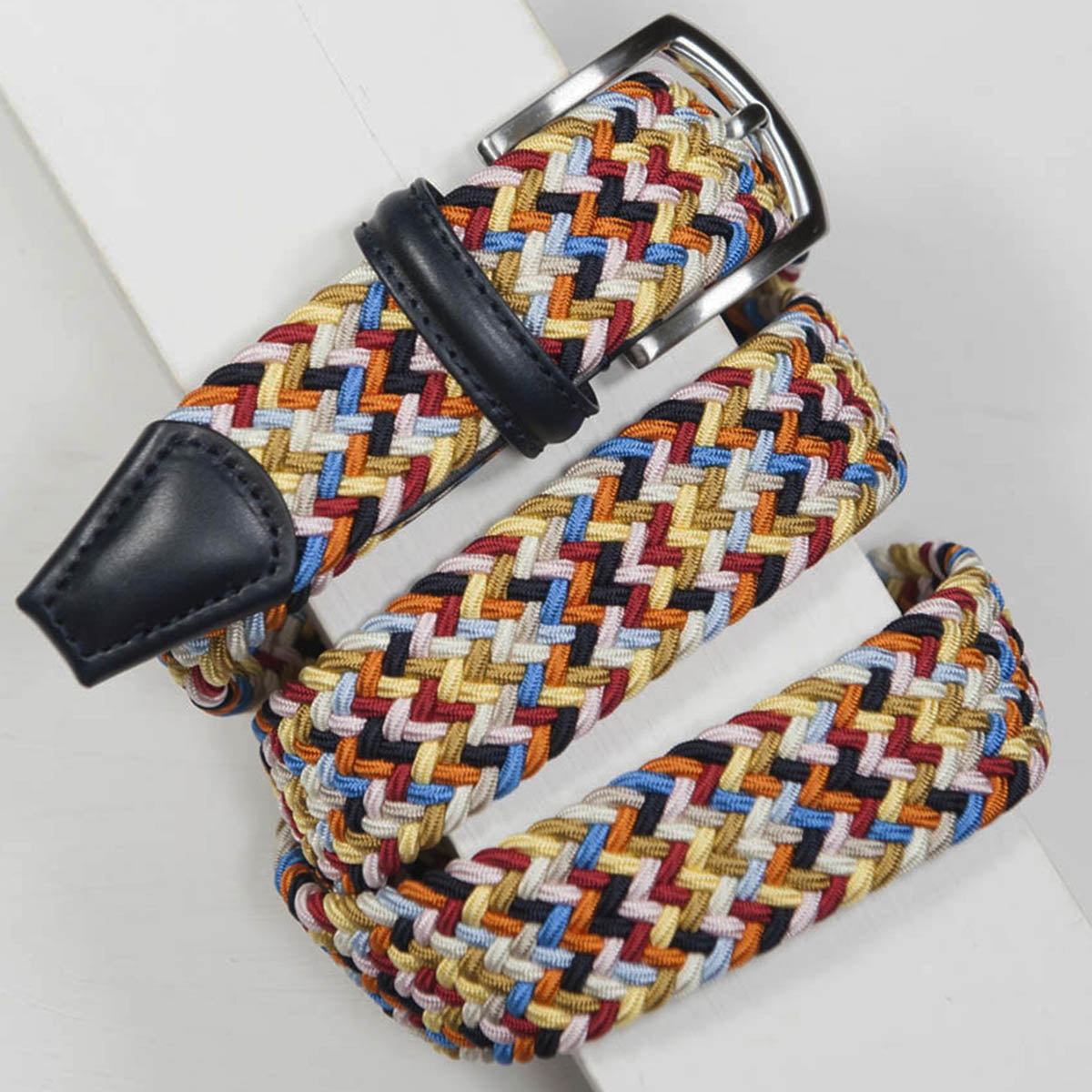 Andersons Classic Elastic Woven Belt Navy/Blue/White/Yellow/Pink