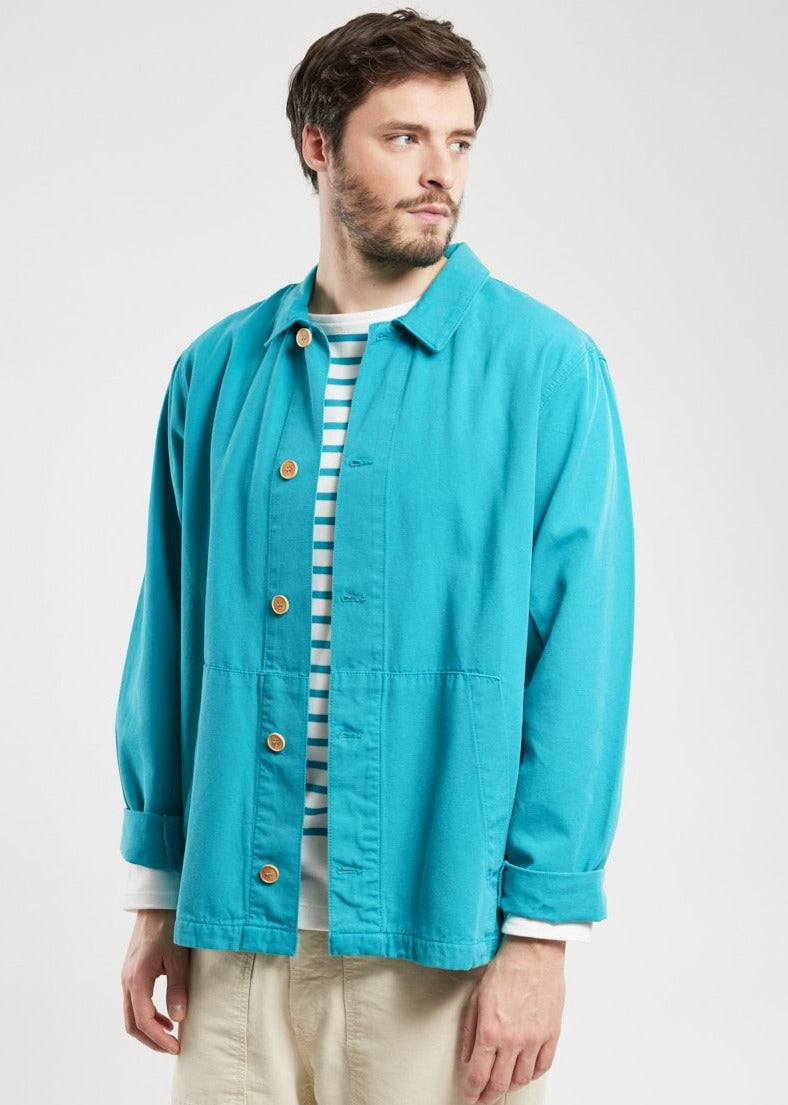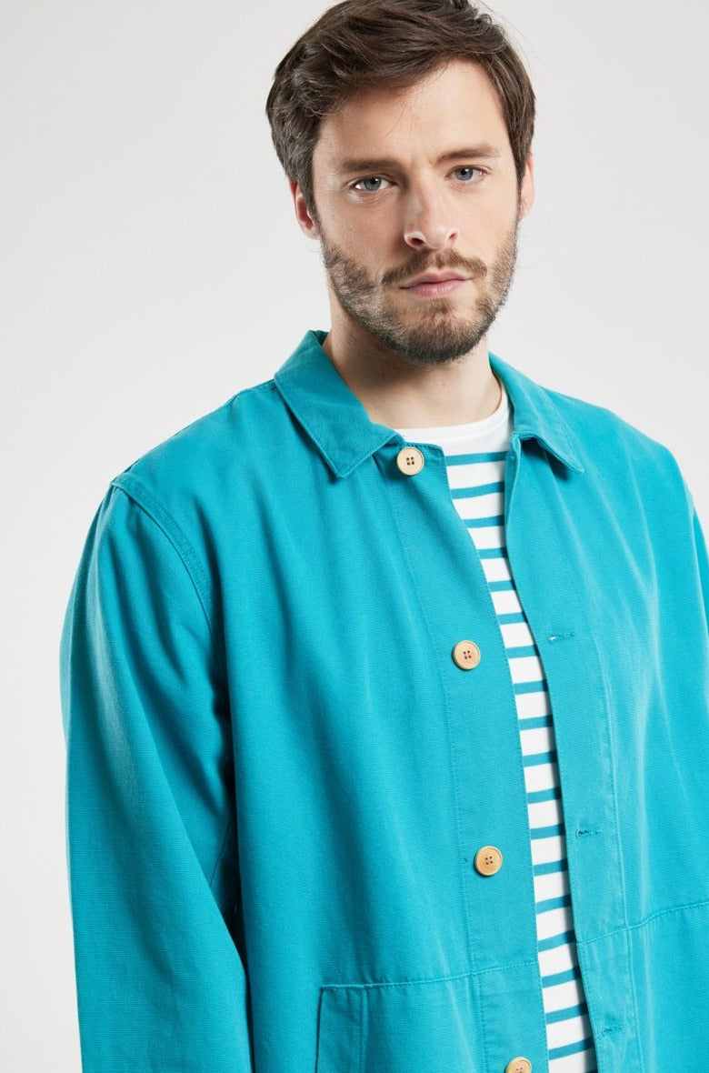 Inspired by its love of armor, the sea, French brand Armor Lux pays tribute to its tradition of clothing seafarers through the Fisherman Chore Jacket. This iconic workwear garment originated in nineteenth century France as a high-quality, durable staple for workers. Armor Lux reimagines this classic piece using its signature natural materials, combining durability and timeless design.