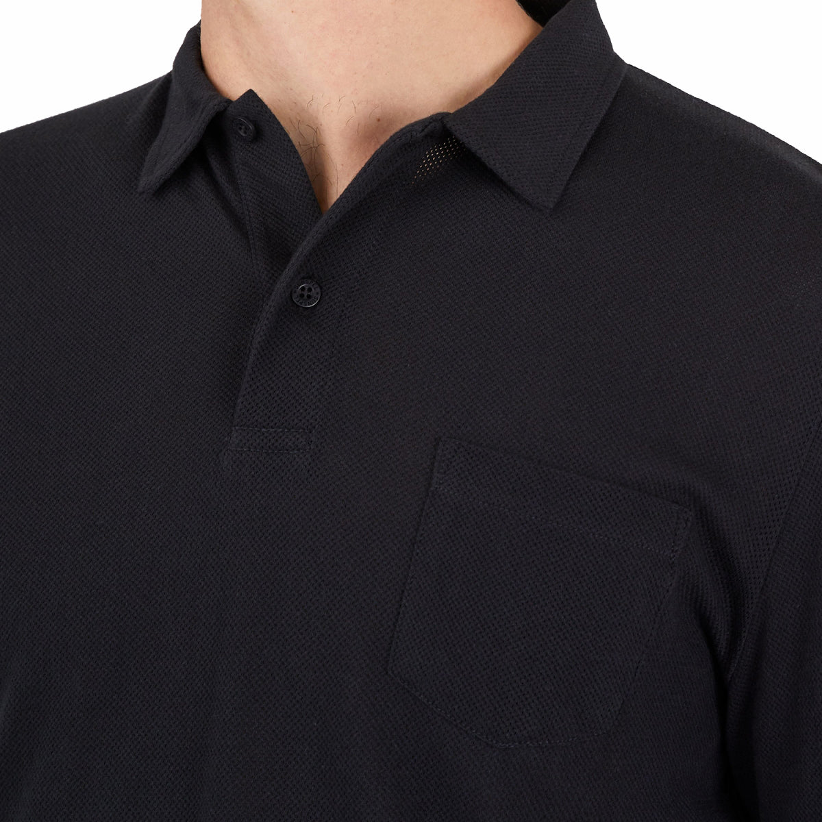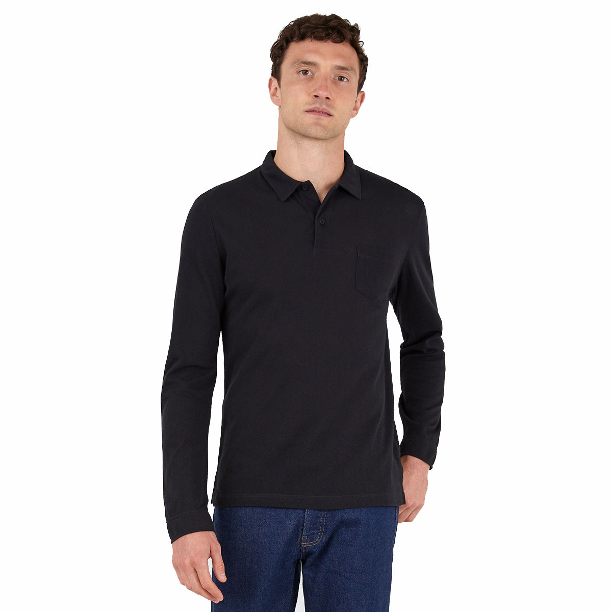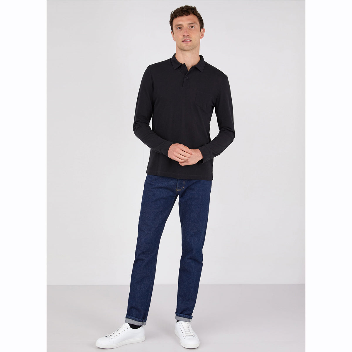 Sunspel Cotton Riviera Long Sleeve Polo Shirt Black