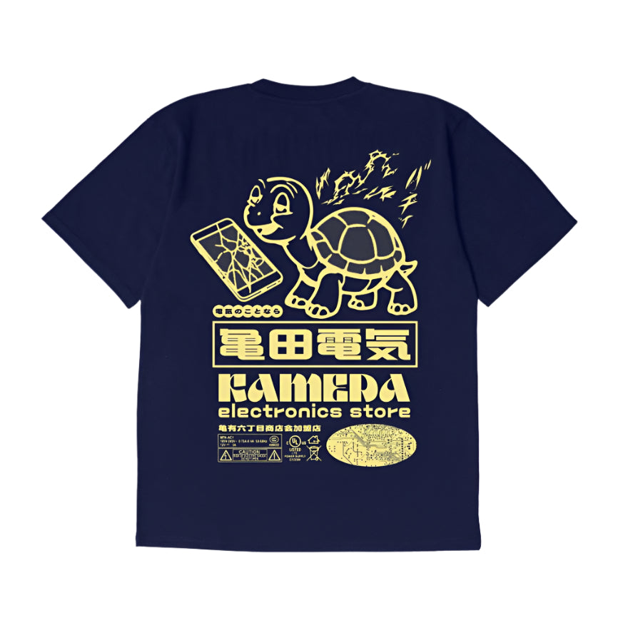 The EDWIN Kamera T-Shirt is made from 160g/m² single jersey, 100% cotton. It features an oversized fit, graphic prints on both chest and back, and a ribbed collar for added durability and structure.