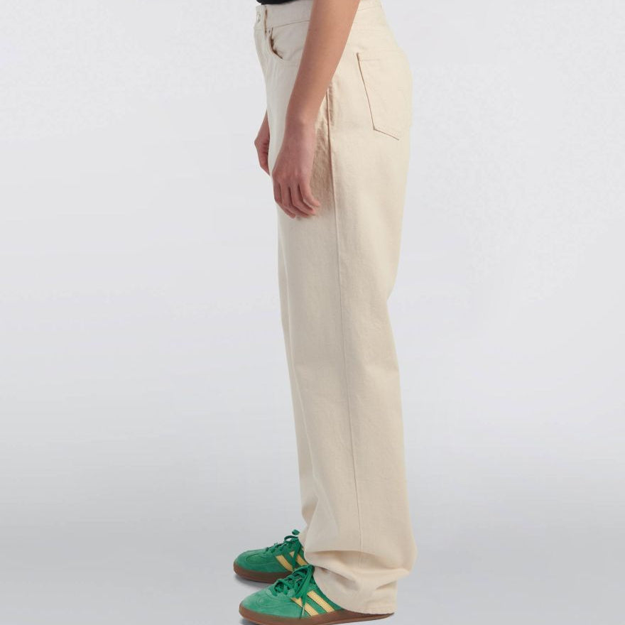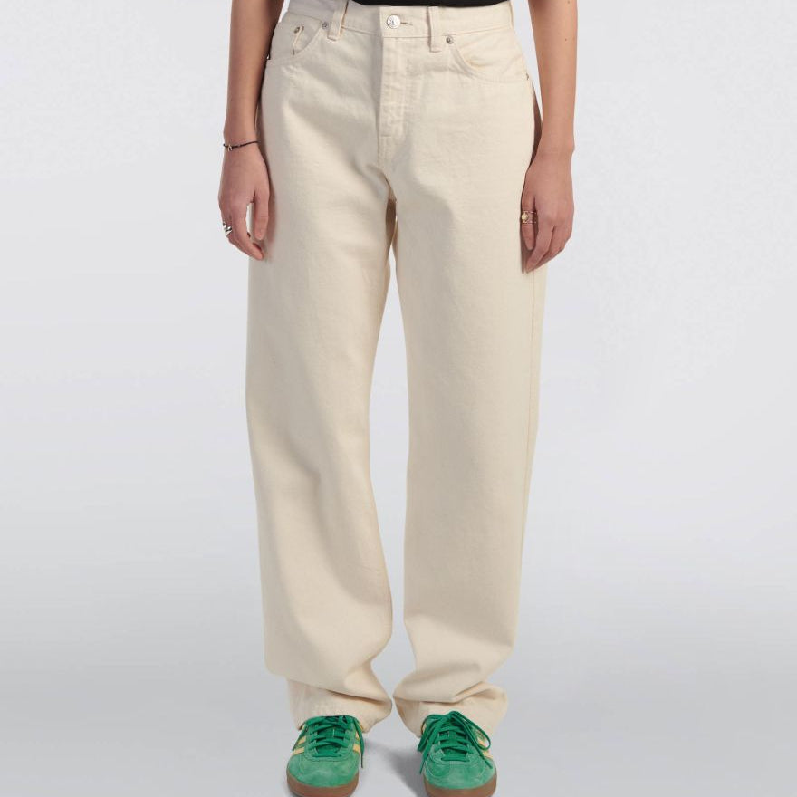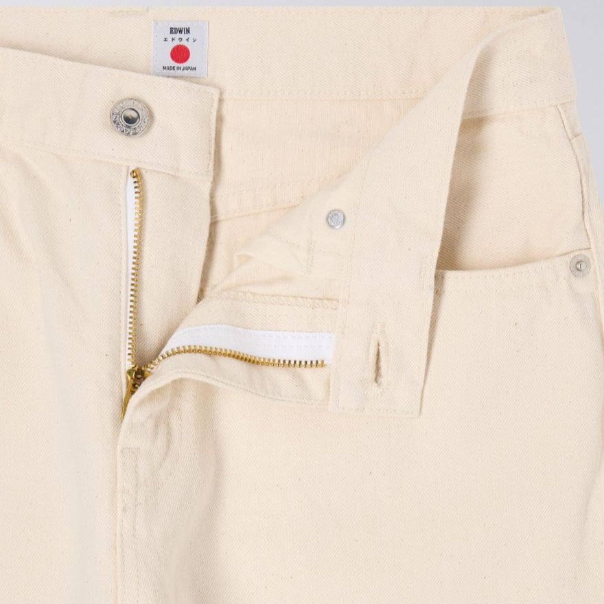 The EDWIN W' Janis Pant is designed for a feminine silhouette with a regular straight fit and mid rise. Made from 14oz Kurabo Recycle Red Selvage Denim (100% cotton), it features durable construction and classic 5-pocket styling. Finished with a polyurethane patch at the back waistband and shiny silver metal trims.