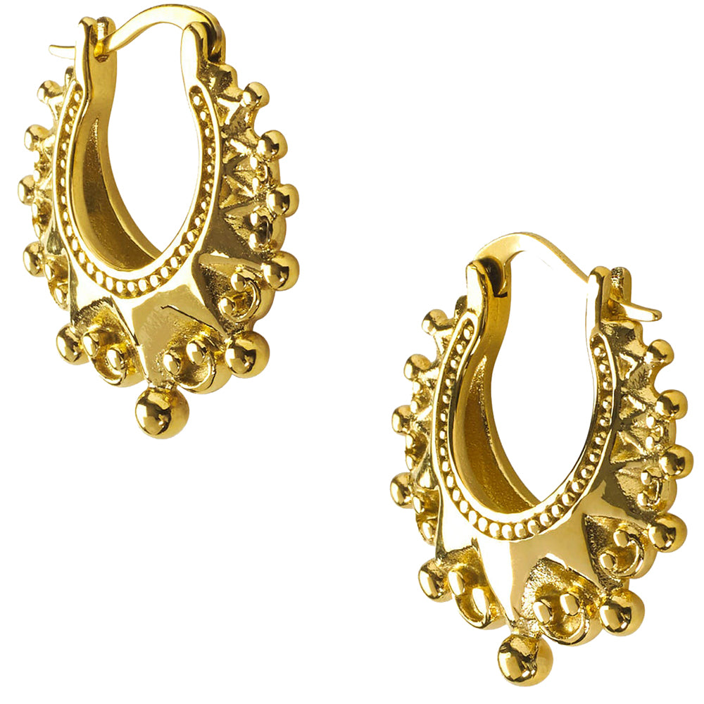 These hoops are 18kt Gold PVD vacuum plated stainless steel which means they're waterproof, tarnish free and won’t chip. Basically, indestructible!
