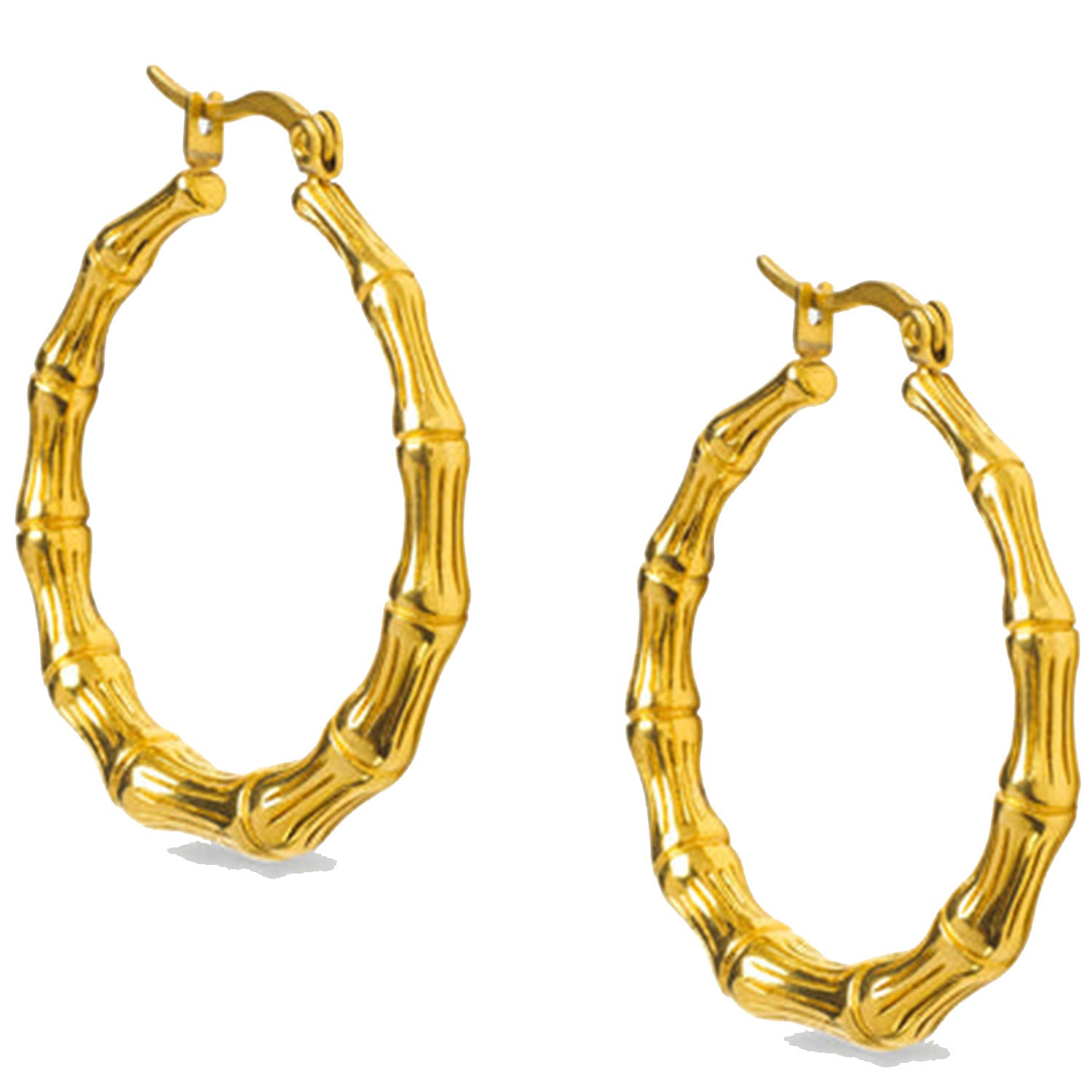 These hoops are 18kt gold plated Stainless Steel with a PVD vacuum coating which means they're 100% waterproof, tarnish free and won’t turn your skin green.