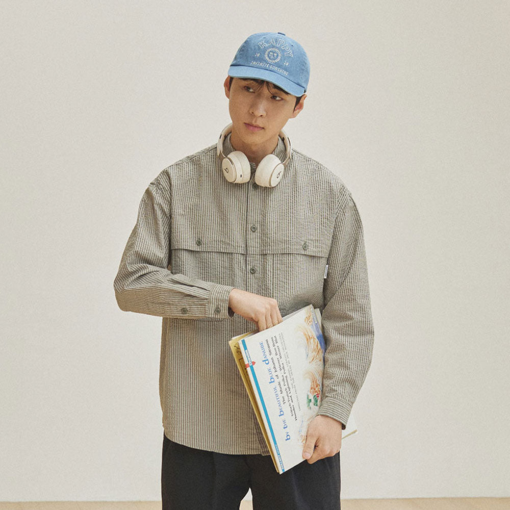 Kappy Design Stripe Pocket Work Shirt Khaki