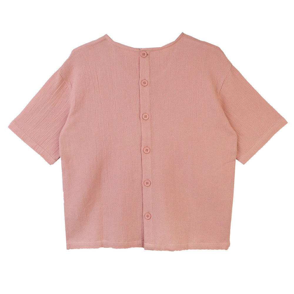 The Bryce Top is a boxy relaxed fit t-shirt with a round neck fastened with buttons down the back. Crafted from a textured waffle weave organic cotton.