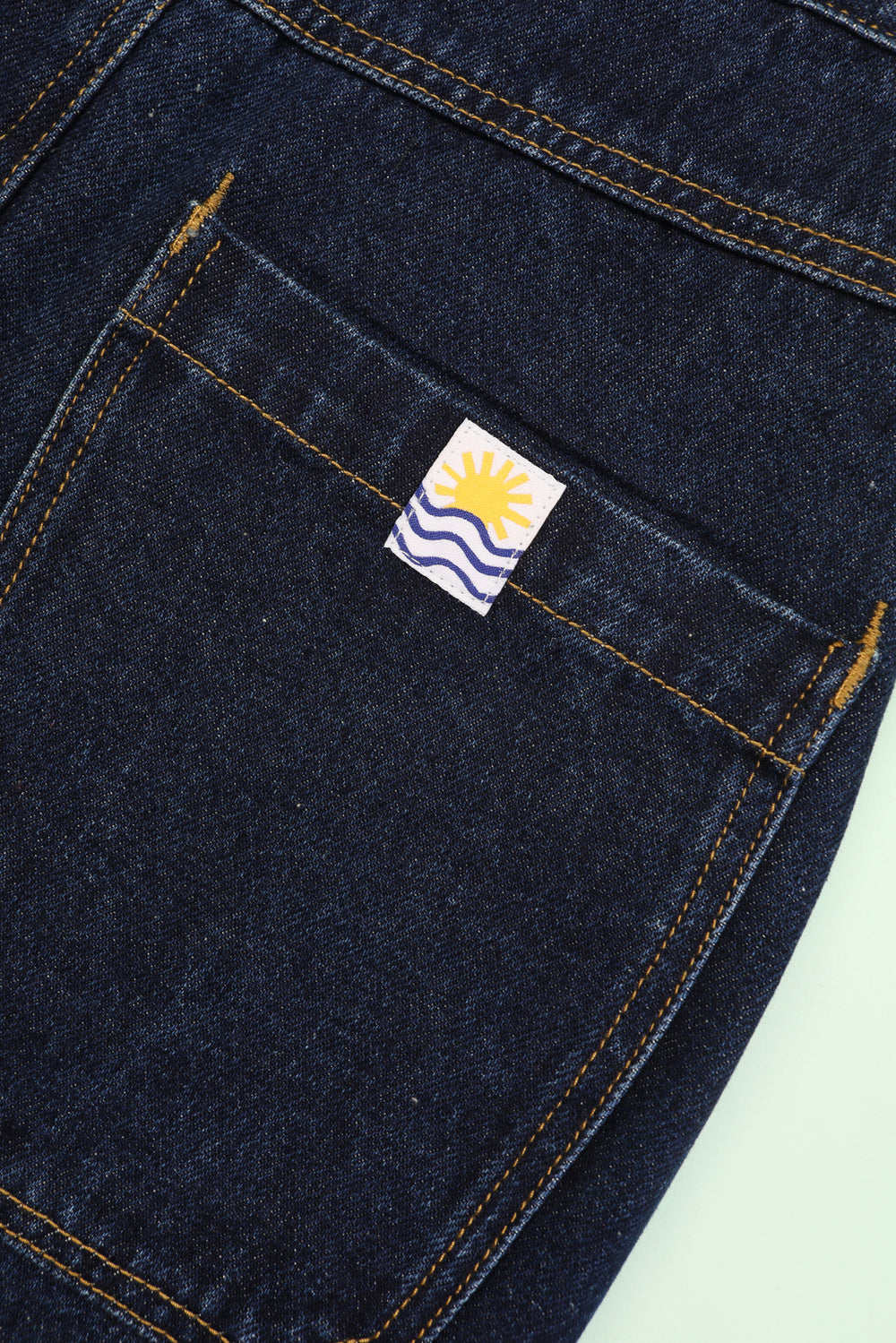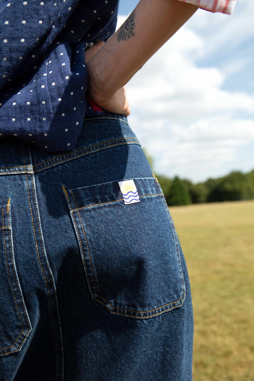 100% Cotton Denim. Machine wash on a cold gentle cycle with similar colours.