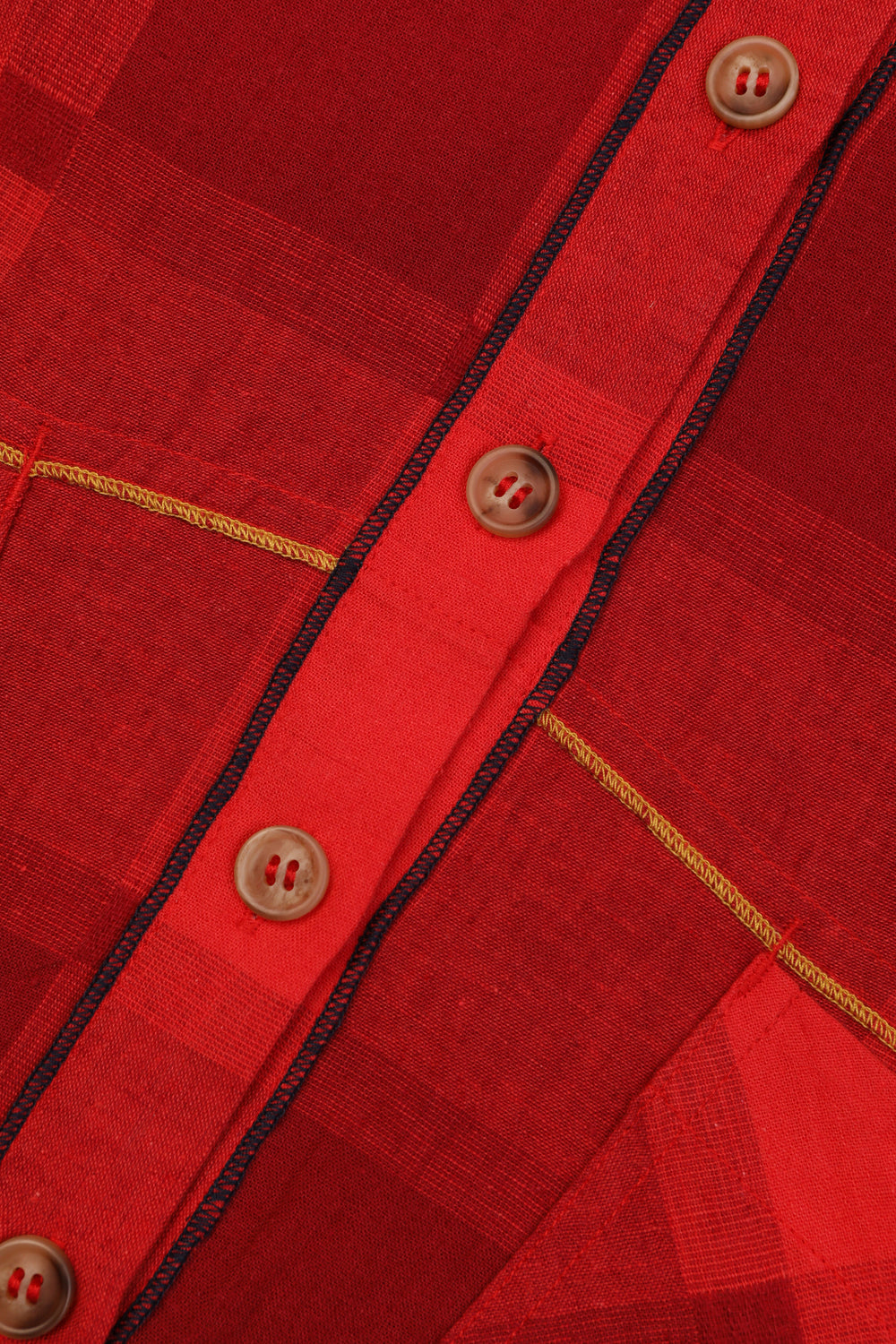 The Gale Shirt has a straight cut, long sleeves and a curved hem. With angled front patch pockets and our mini sun woven patch logo. Crafted from a cotton linen blend in Red Gingham, with contrasting primary coloured babylock stitching on the front seams and back yoke.