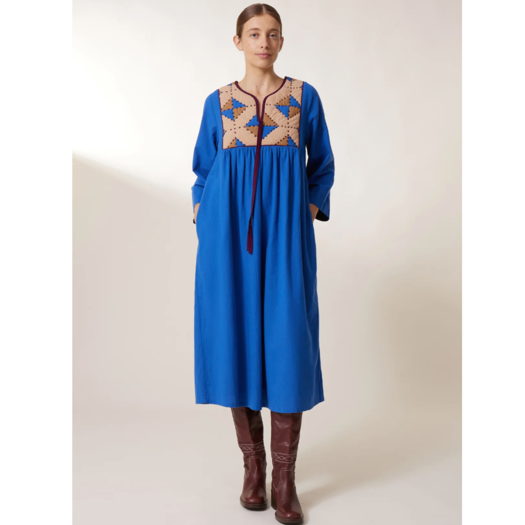 The Rom Losange dress is a must-have this winter. With its geometrically embroidered front panel and loose sleeves, it offers the Leon & Harper woman a touch of authenticity and boho charm, helping her to create elegant yet casual looks for any occasion.