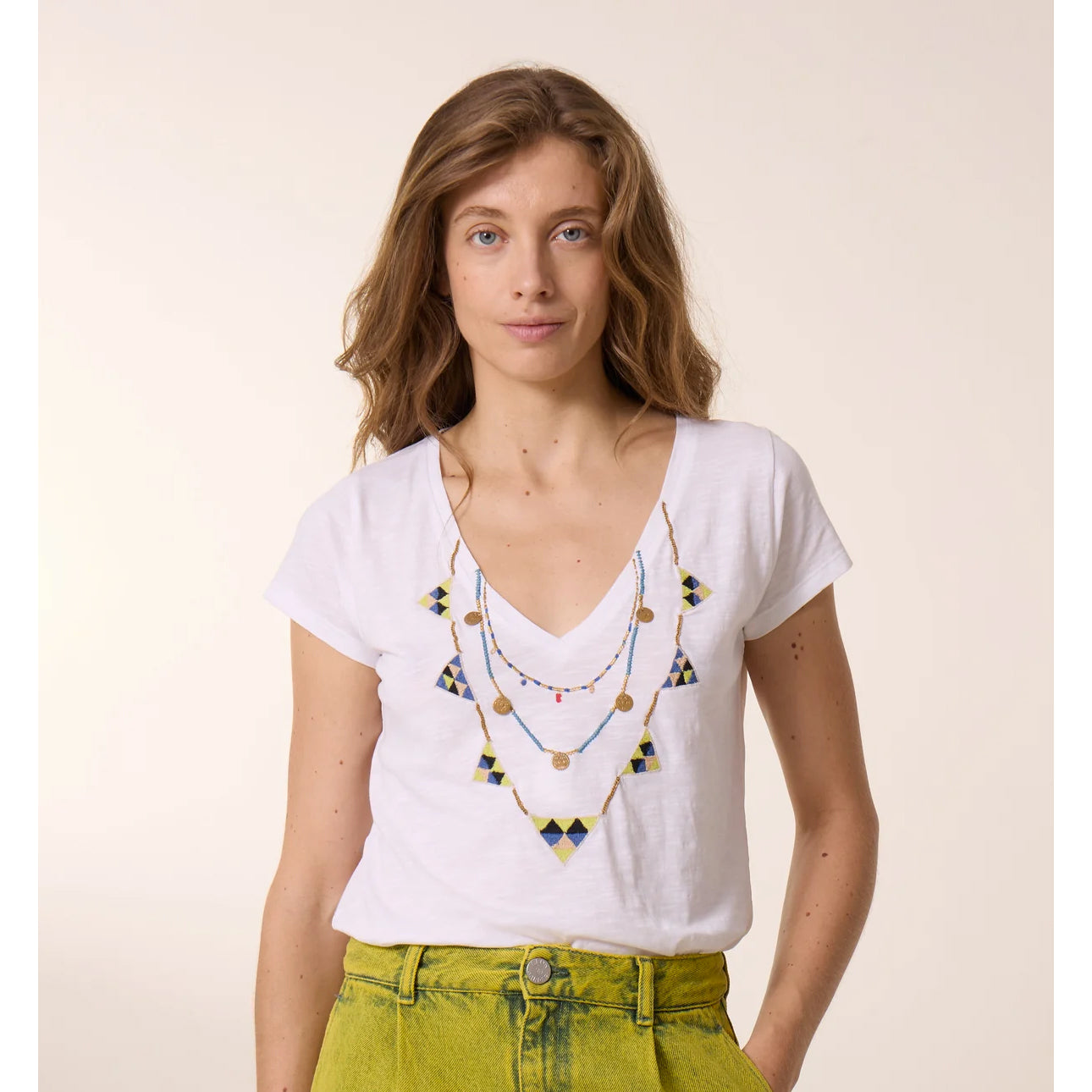 Embellished with colourful embroidery on the chest, the Tonton Brodery T-shirt is perfect for the Leon & Harper woman in search of an original boho look.