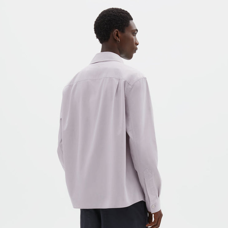 A core MHL. design, the Overall Shirt has a relaxed, boxy cut and is fabricated in plainweave cotton canvas. The shirt is constructed with a dropped shoulder, raised placket, button-through chest patch pocket and stitch side gusset detailing.