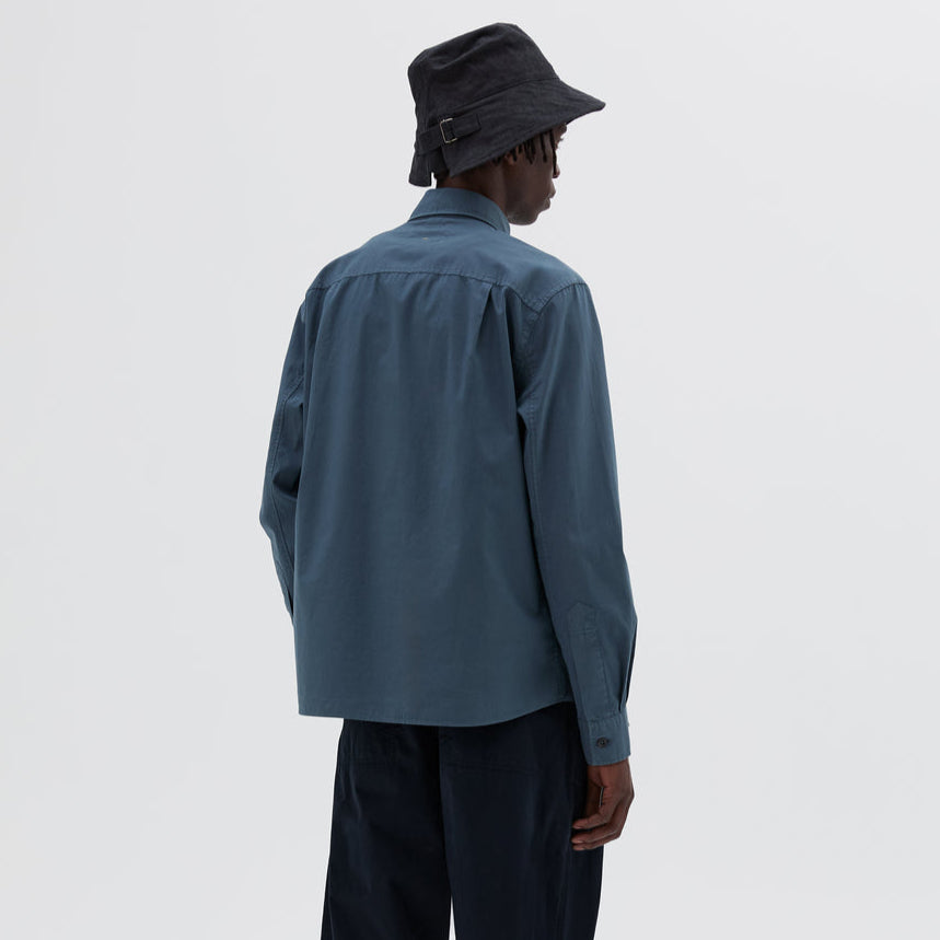 MHL Overall Shirt Washed Cotton Poplin Mineral Blue