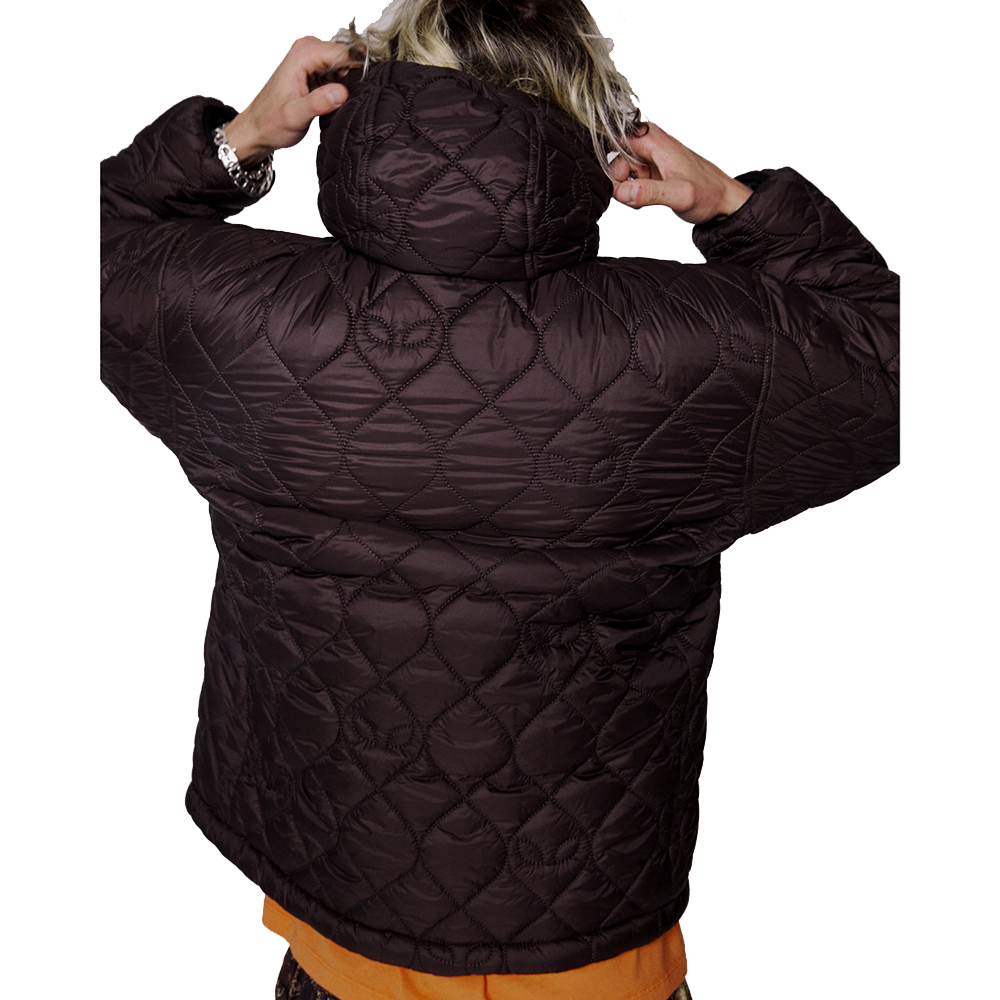 - UNISEX HOODED PUFFER JACKET WITH PADDED ALIEN-O STITCH DETAILING, FULLY REVERSIBLE WITH BROWN ON ONE SIDE AND BLACK ON THE REVERSE.