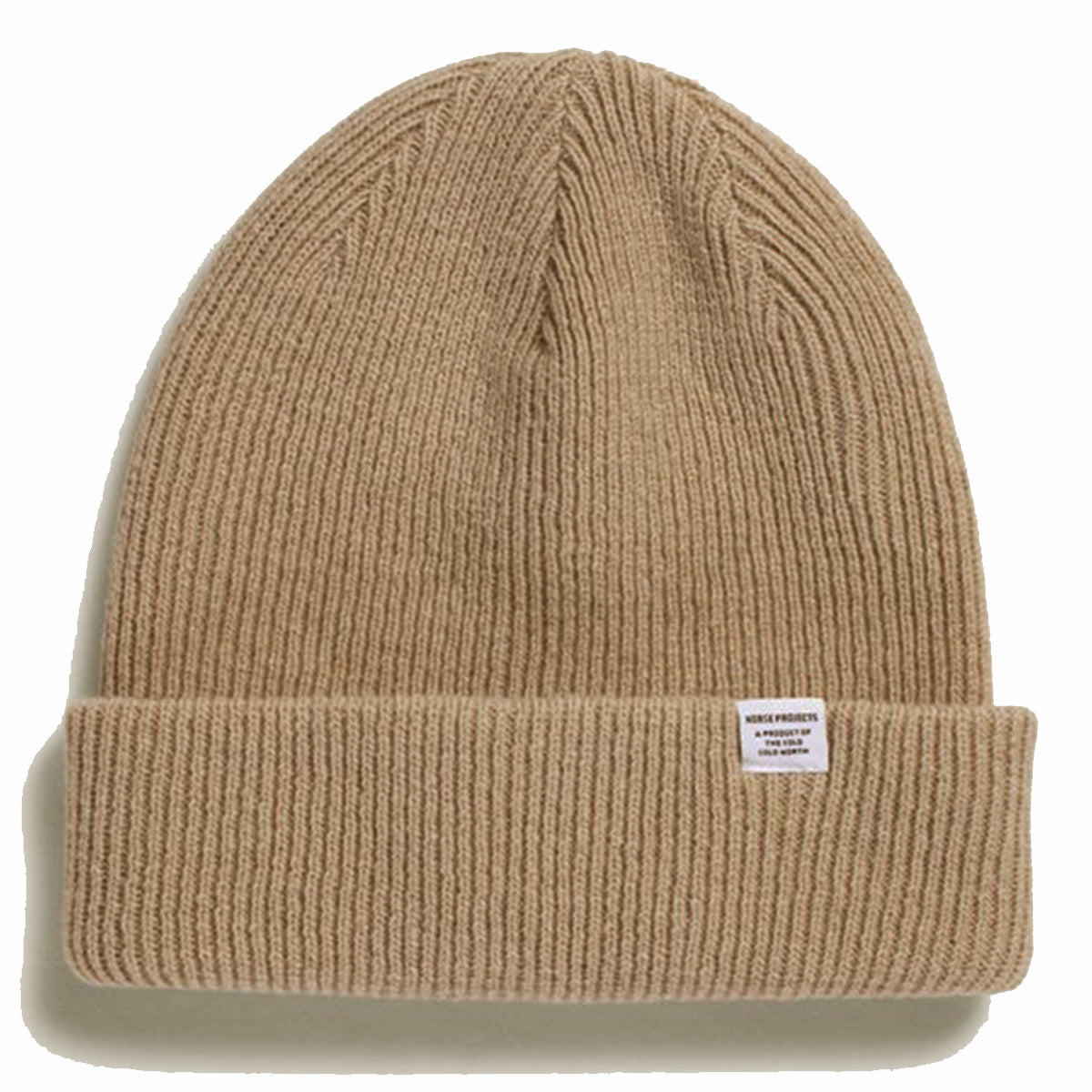 A beanie knitted in a simple 1x1 rib in Italian merino lambswool yarn. Finished with a signature Norse Projects tab label.
