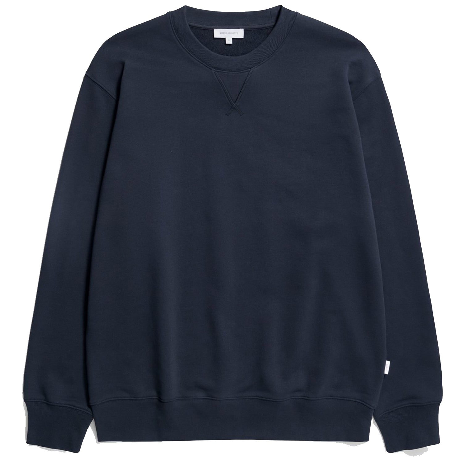 The Norse Standard Sweatshirt is made from midweight organic cotton, offering a regular fit. Crafted in Portugal, it features set-in sleeves, a loopback sweat finish, a gusset at the center front, and ribbed collar, cuffs, and hem.