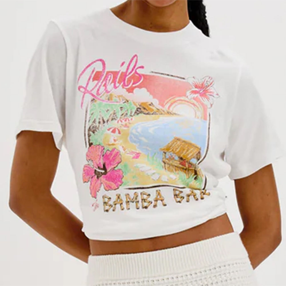 The graphic tee of your dreams. Made from an unbelievably comfortable cotton jersey, this boyfriend-style shirt comes in a white colorway with a tiki-inspired print.