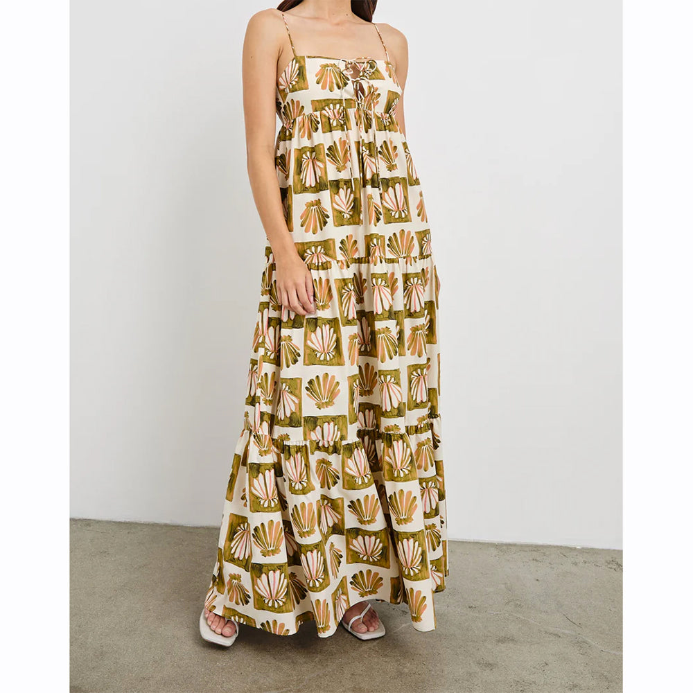 Made from 100% crinkled cotton poplin, the Mica is an easy-wearing maxi dress with a fitted bodice and full, flowy skirt. Features full lining and adjustable straps.