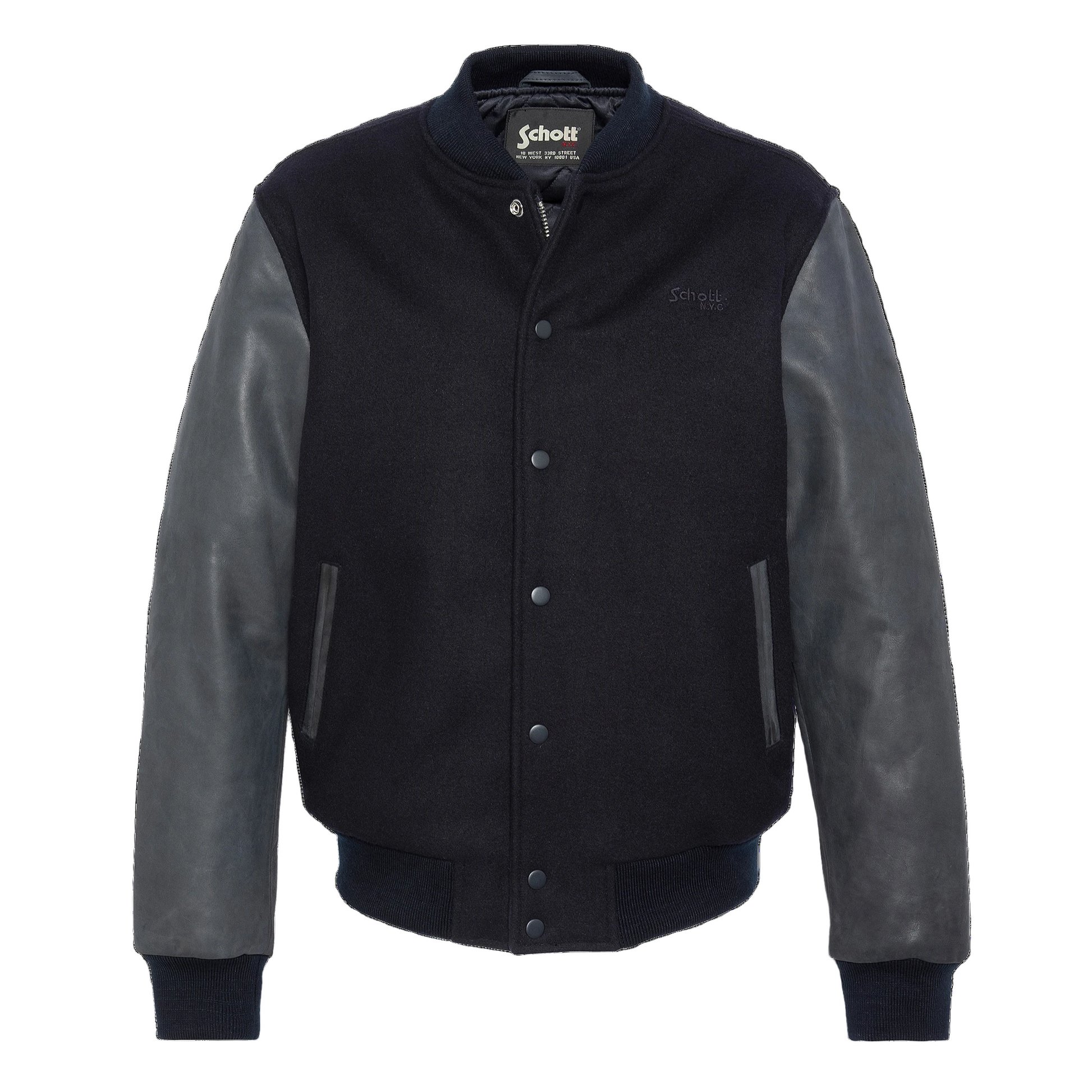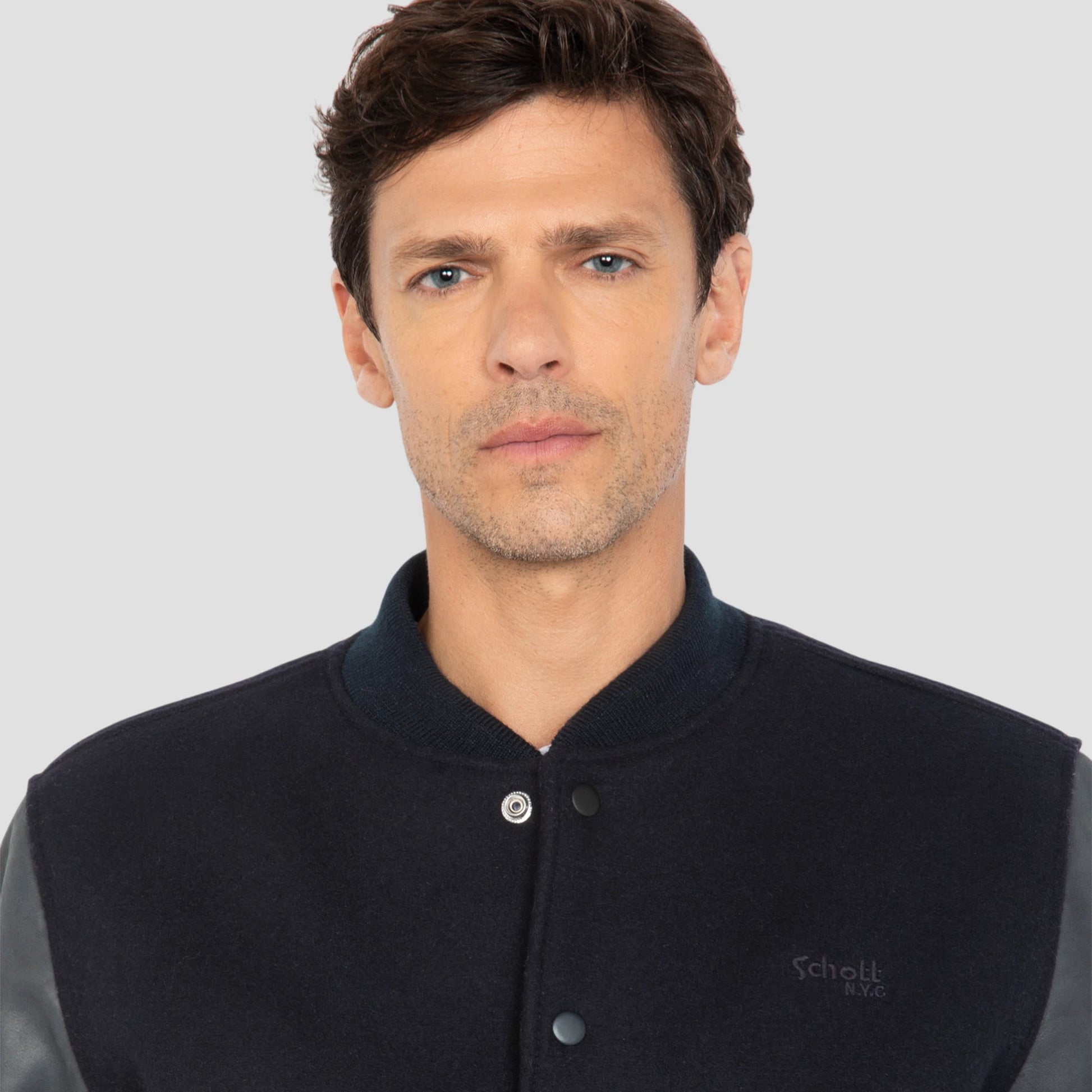 Schott LCUSA Leather/Wool Varsity Jacket Navy/Navy