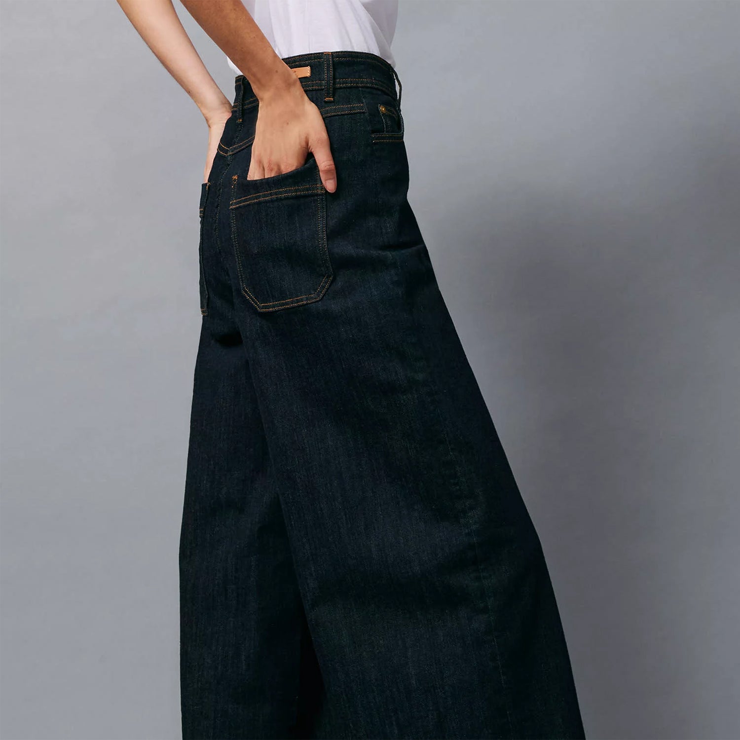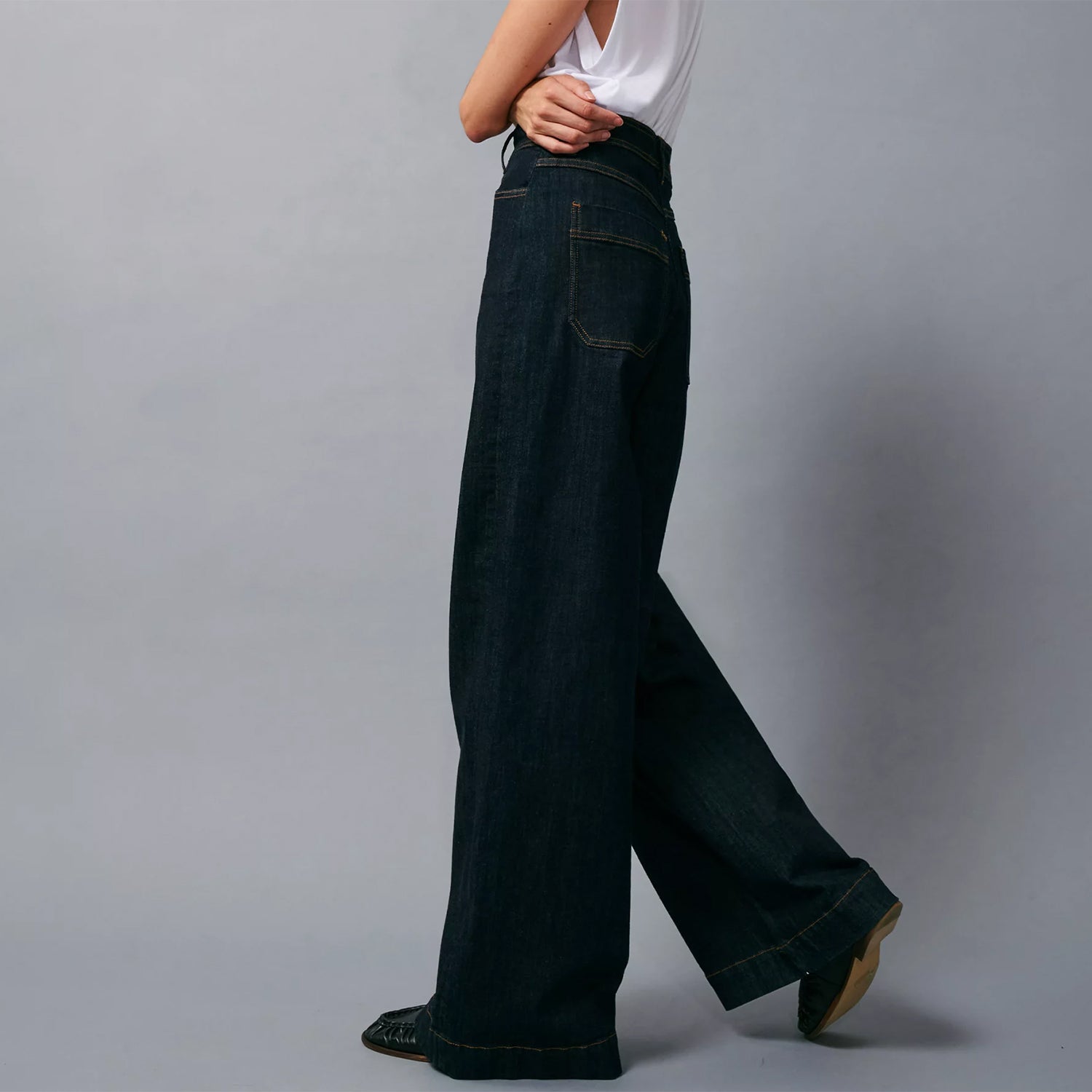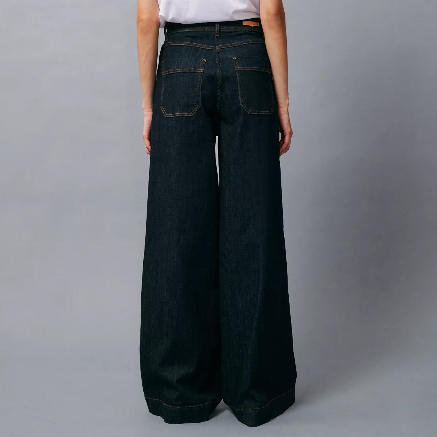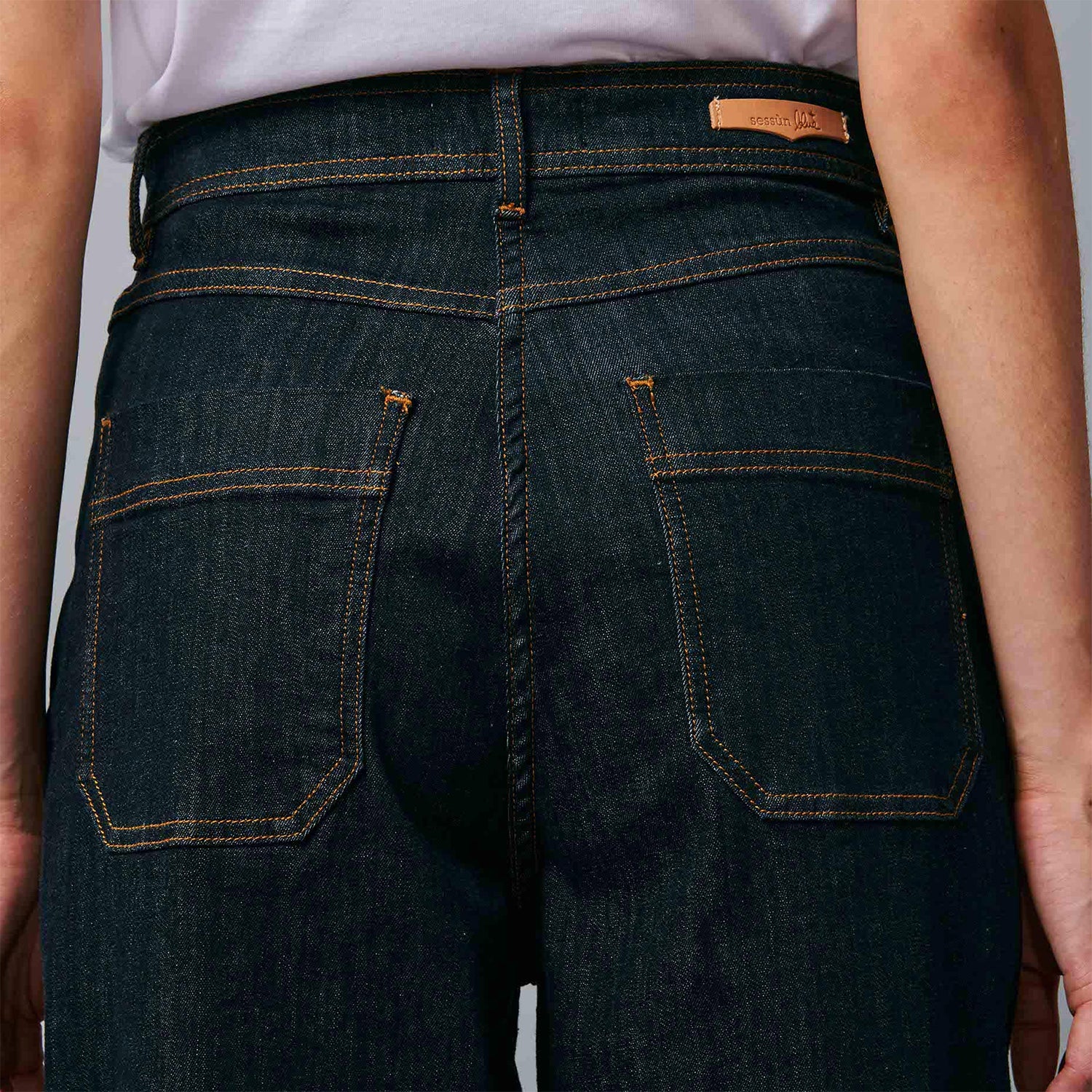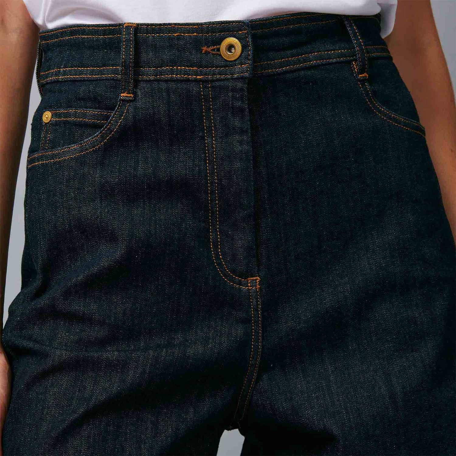 This garment is made from fabric containing indigo-dyed threads. This specific method reveals the unique details of each material, creating variations in color and irregularities, making each piece unique.