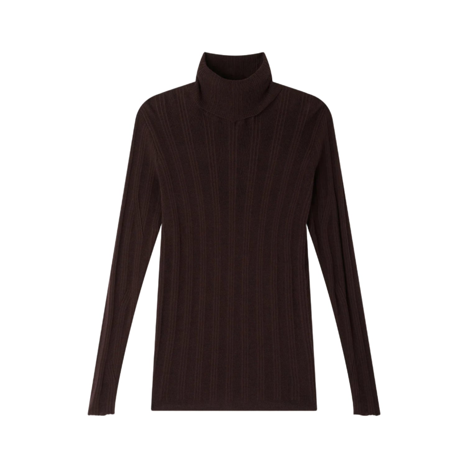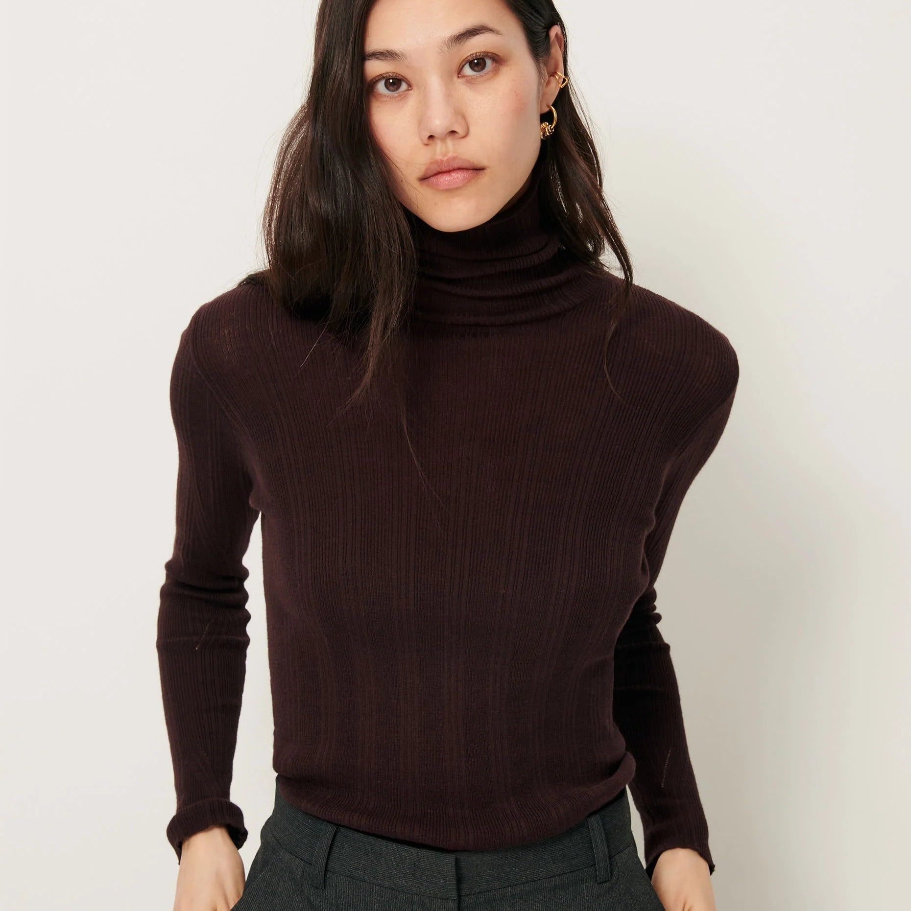 Fitted turtleneck sweater in fine-gauge knit with graphic ribbing on the sides and sleeves.