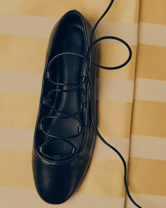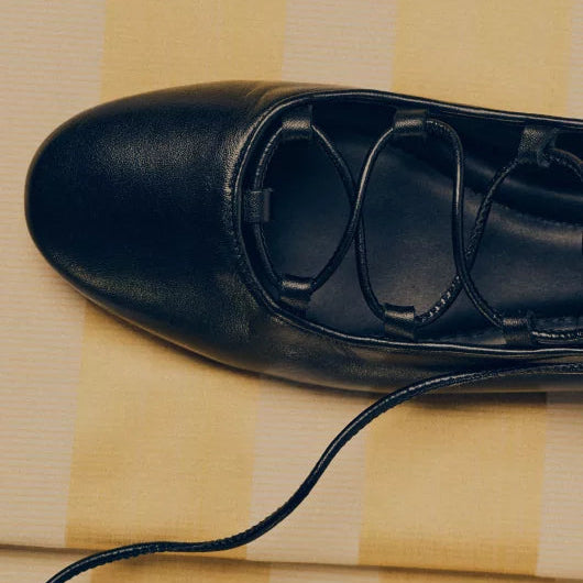 Round-toe Leather ballerina flats with lace-up details, made in Portugal.