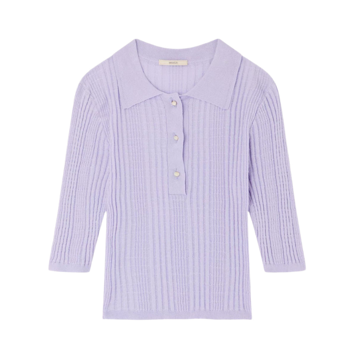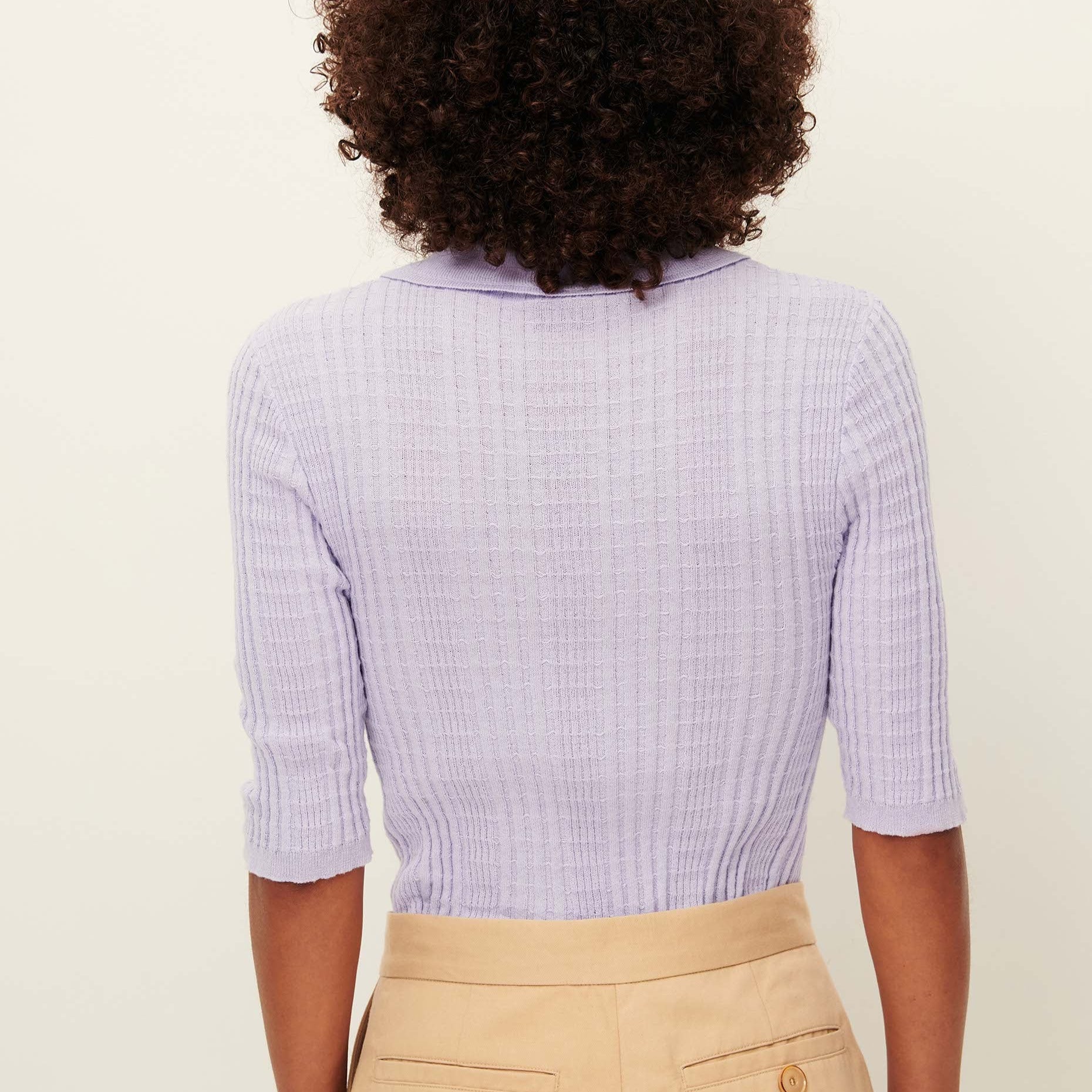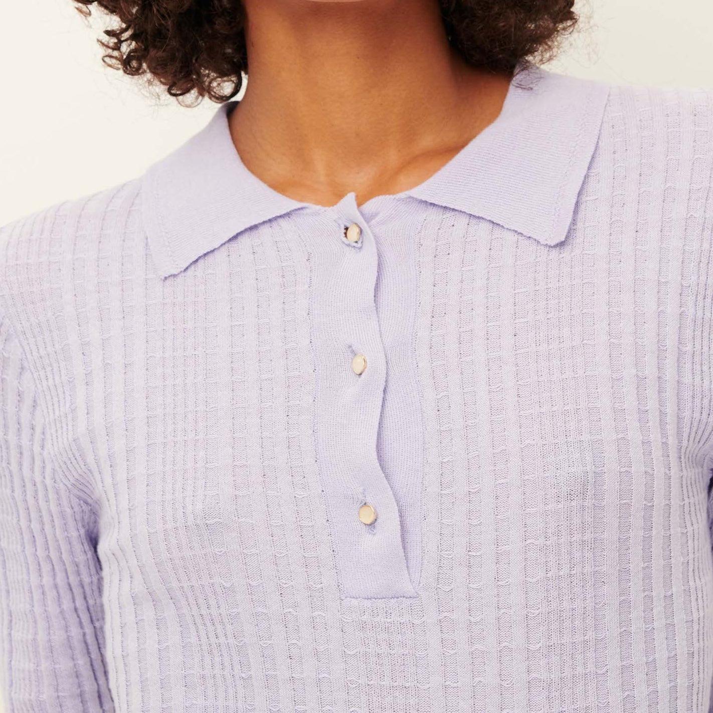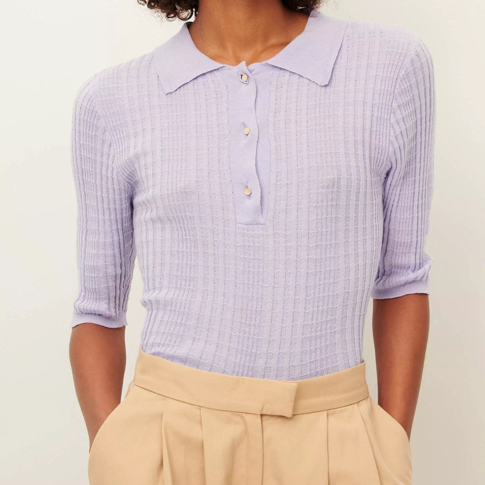 Close-fitting polo shirt in a fine knit fabric with fancy ribbing.