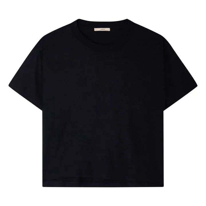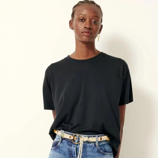 Short sleeves wide T-shirt in fluid simple knit fabric.