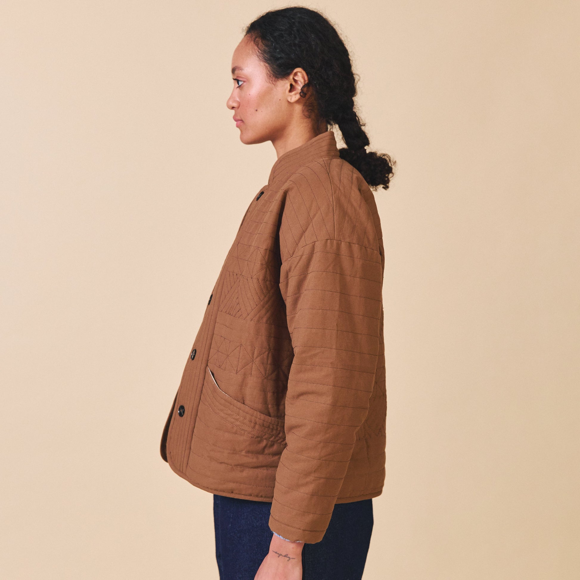 The Matilda Jacket is based on a best-seller from our first ever collection. This style is made from a beautiful cotton base with a unique bespoke quilting embroidery. The Matilda Jacket has dropped shoulders, an easy/boxy fit and deep, practical pockets. This style is very hardwearing and is perfect for all year around. This style is part of our 10-year celebration collection.