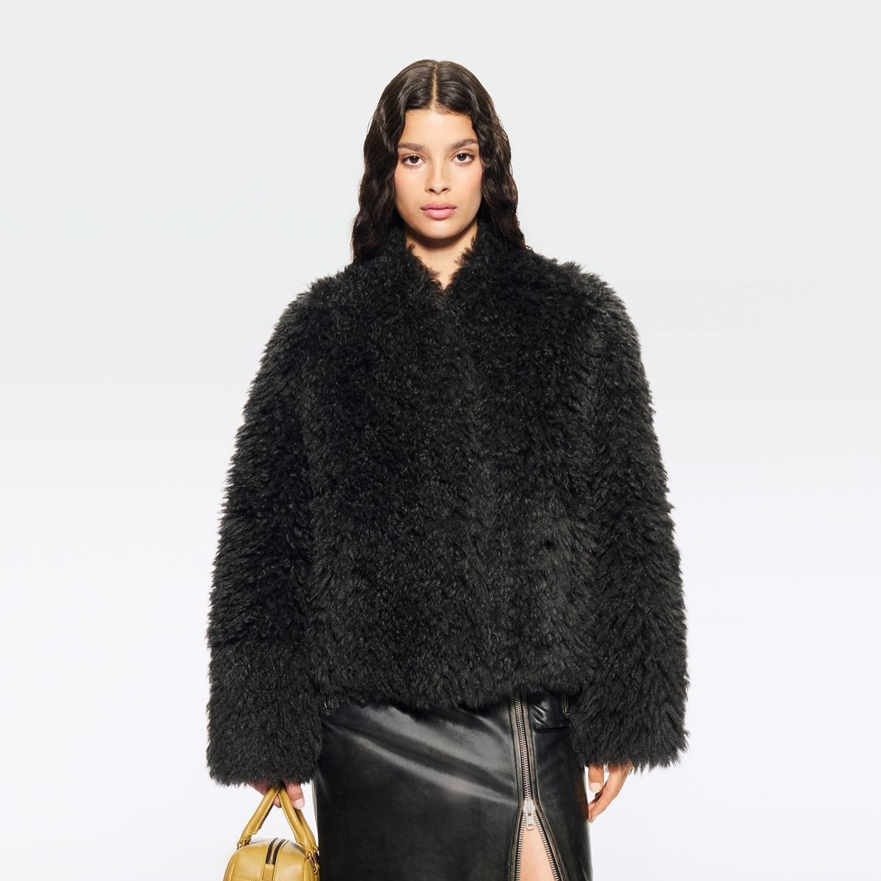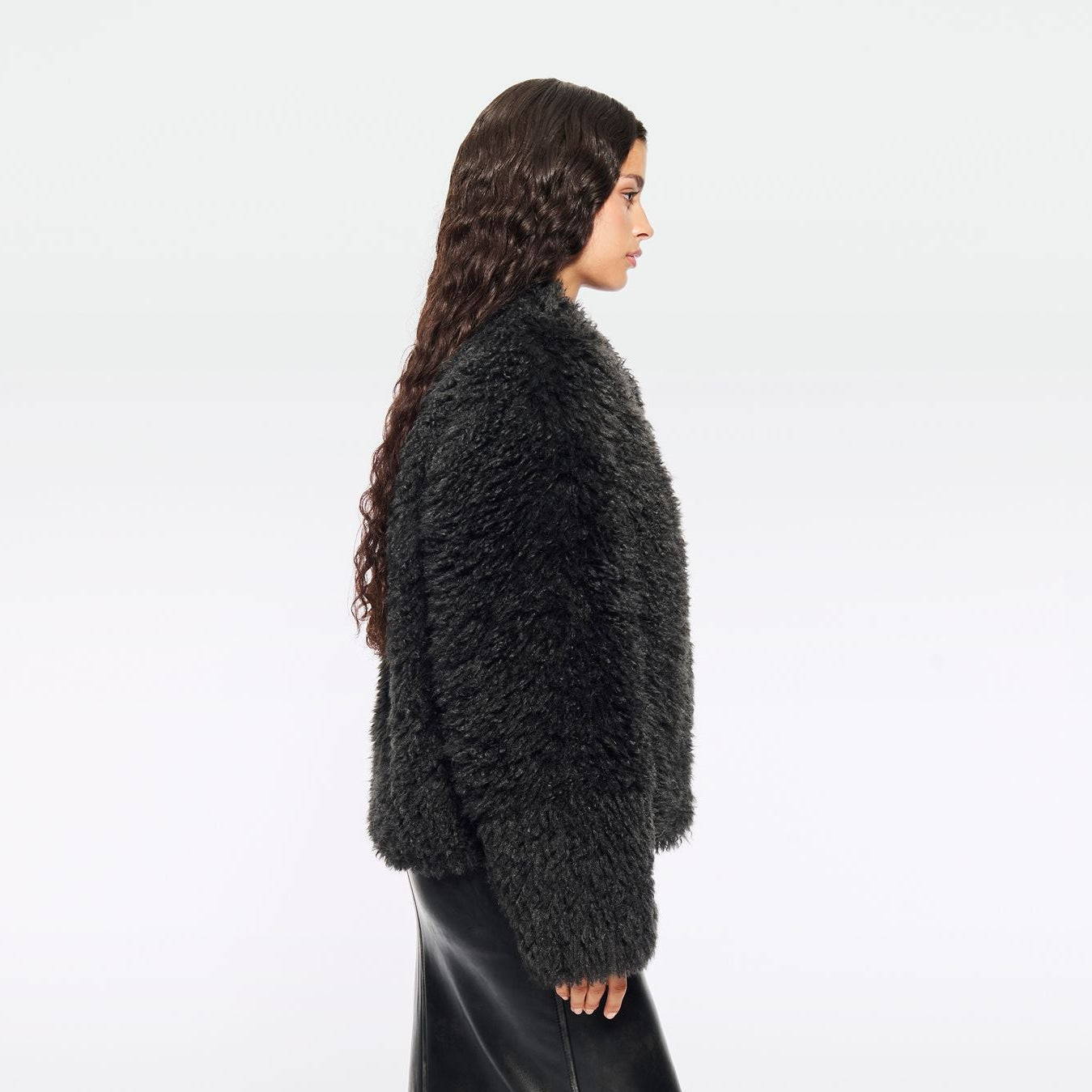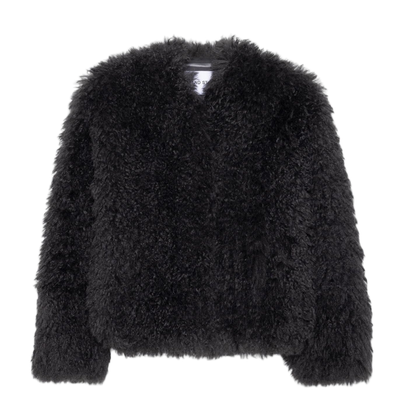 The Charlotte jacket is cut to hip length with a straight silhouette and made from faux fur. It fastens with hidden hook-and-eye closures, has in-seam pockets and is fully lined.
