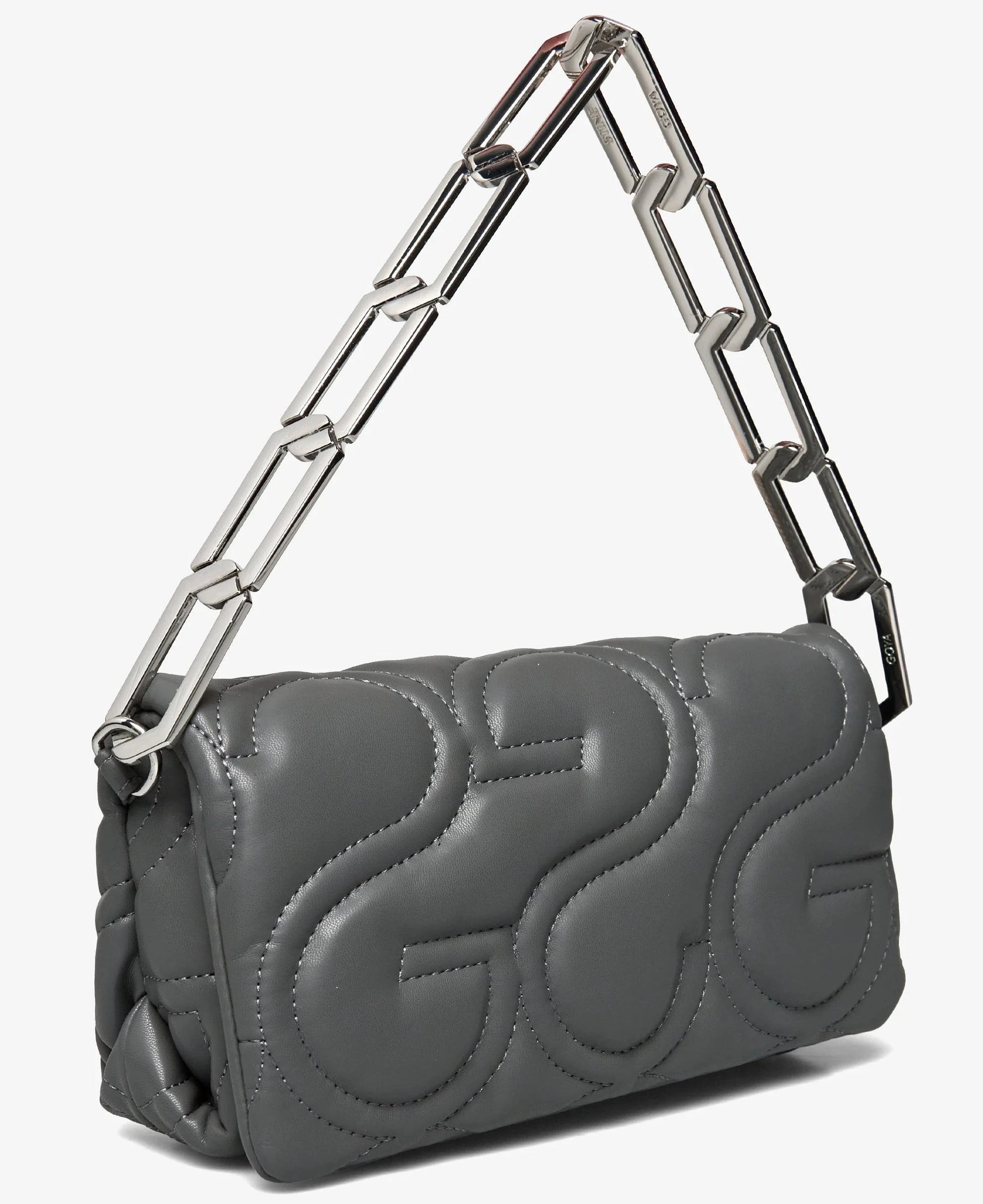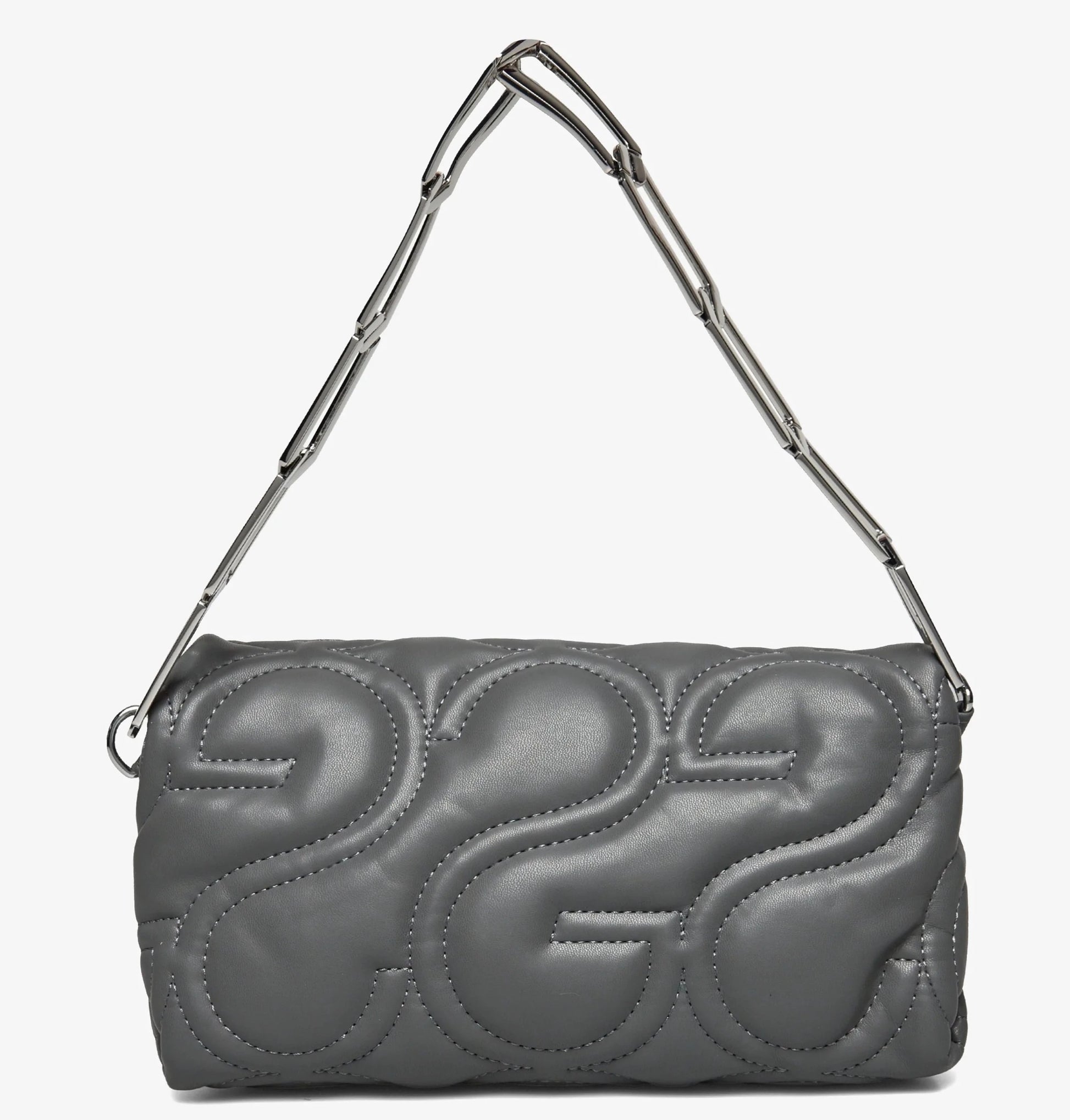 FAUX LEATHER ENVELOPE CLUTCH WITH TEXTURED STINE GOYA LOGO PATTERN, FOLD OVER TOP AND SILVER TOP HANDLE CHAIN. CRAFTED FROM A RECYCLED POLYESTER BLEND MATERIAL.