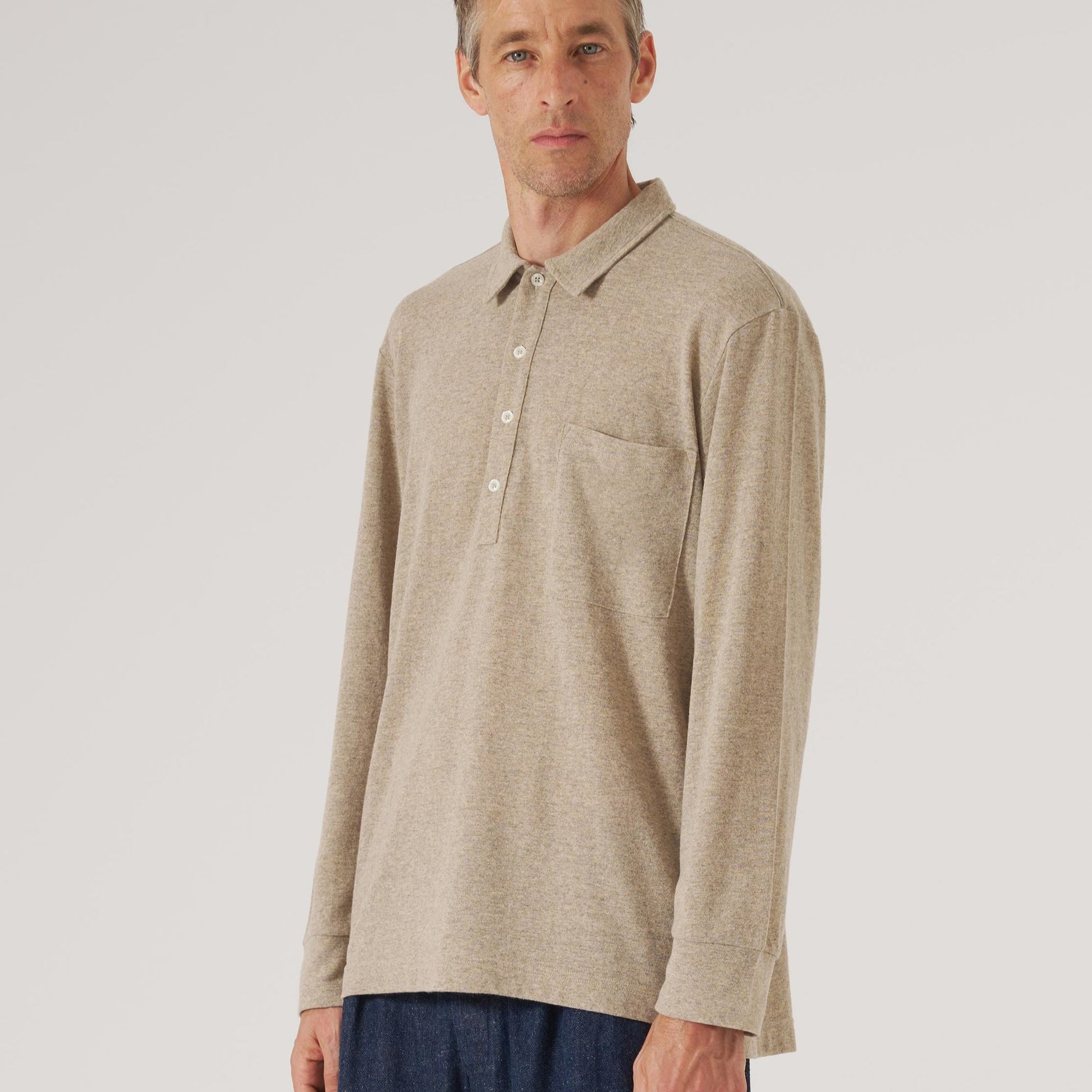 Smart meets casual with the Pullover Shirt. A soft knitted lightweight half-buttoned shirt with self fabric collar and trims.