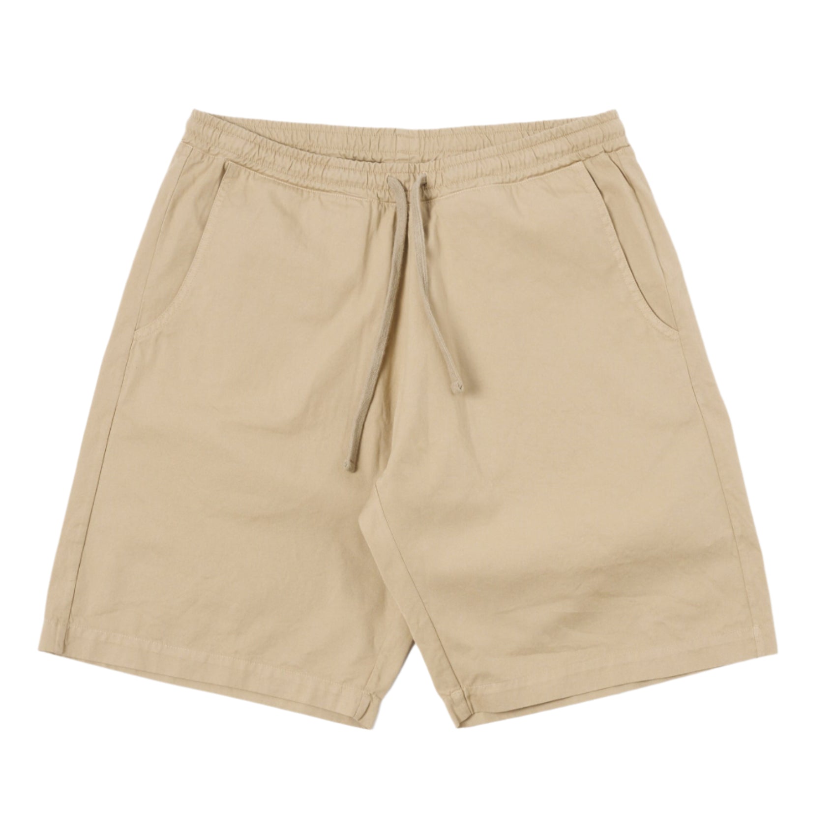 Simple, comfortable, above-the-knee throw-on shorts with an elasticated and drawstring waist. With taping on the pockets for strength.